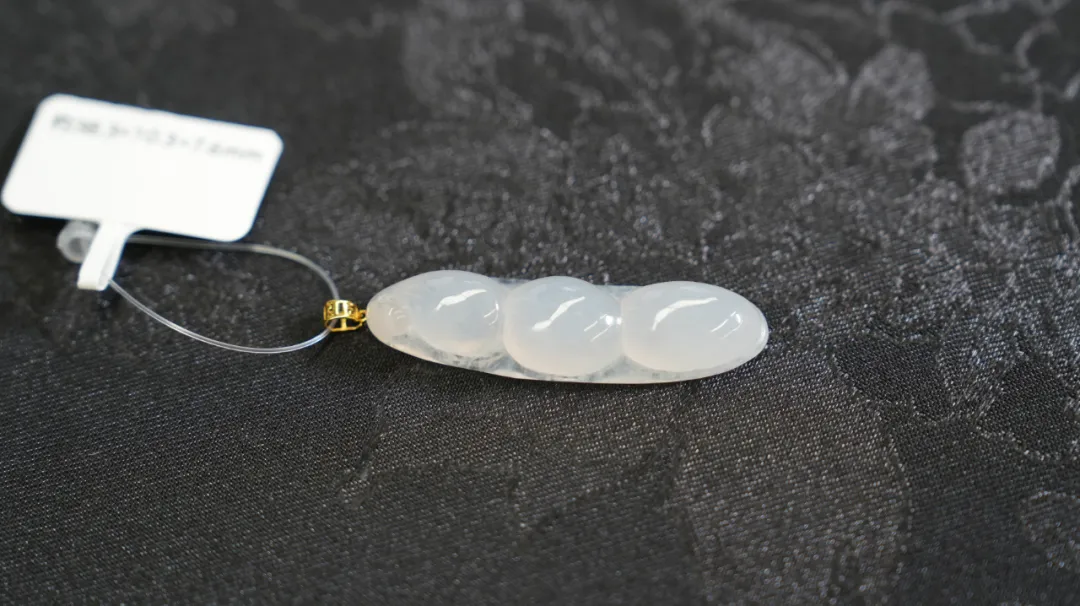 首先要说这个白冰的翡翠福豆挂件,够白,细腻水润,而且胶油感好,非常大气。