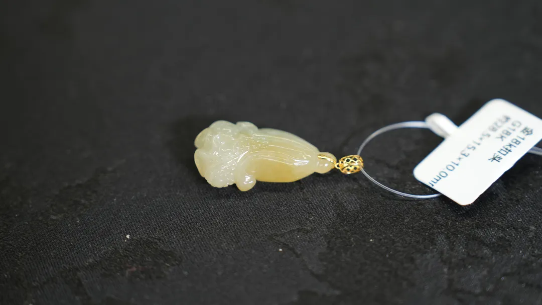 还有这个黄翡百财挂件,白菜寓意“财”,黄翡也是金子的颜色,寓意好又可爱。