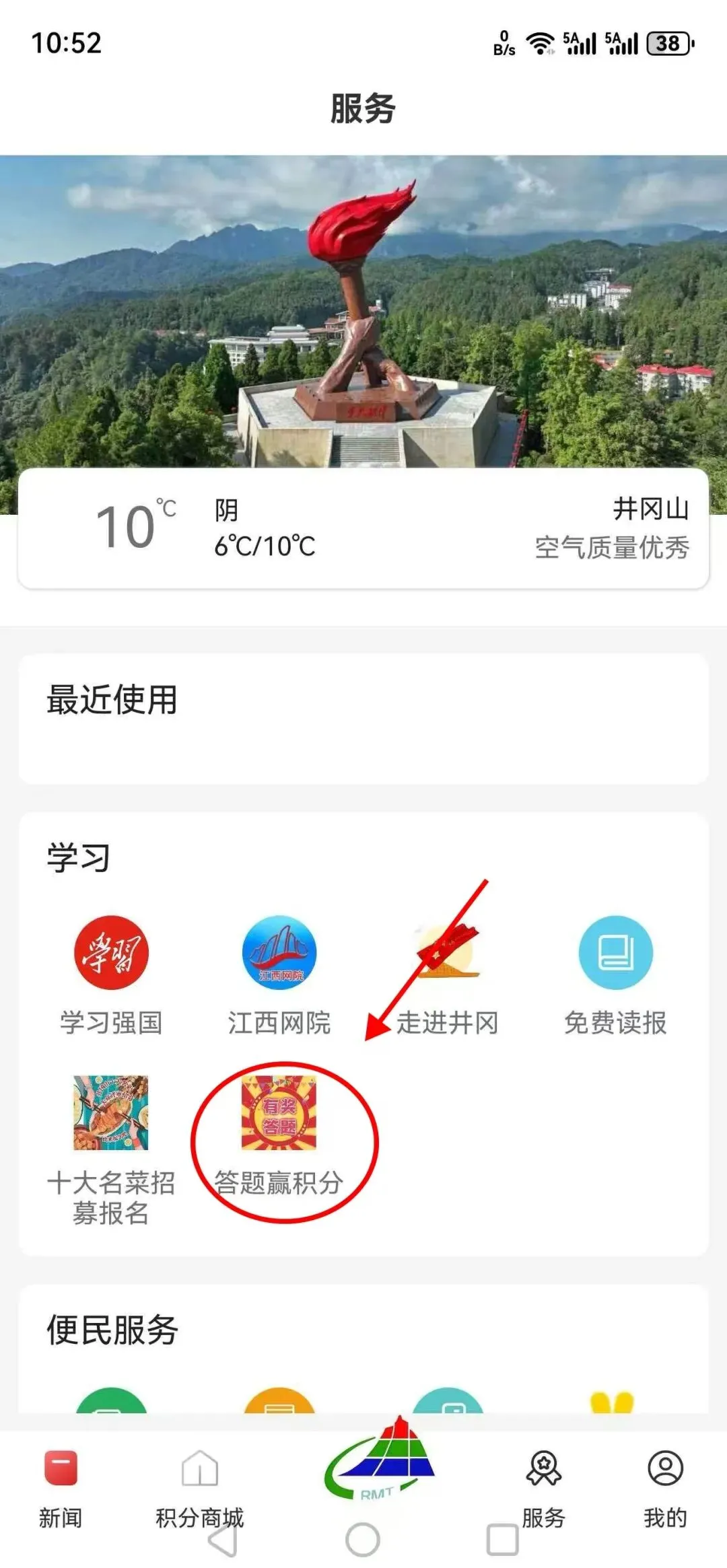 ❸ 狂点 ‌「服务」-「学习」-「答题赢积分」‌ (路径如图,迷路算我输!)