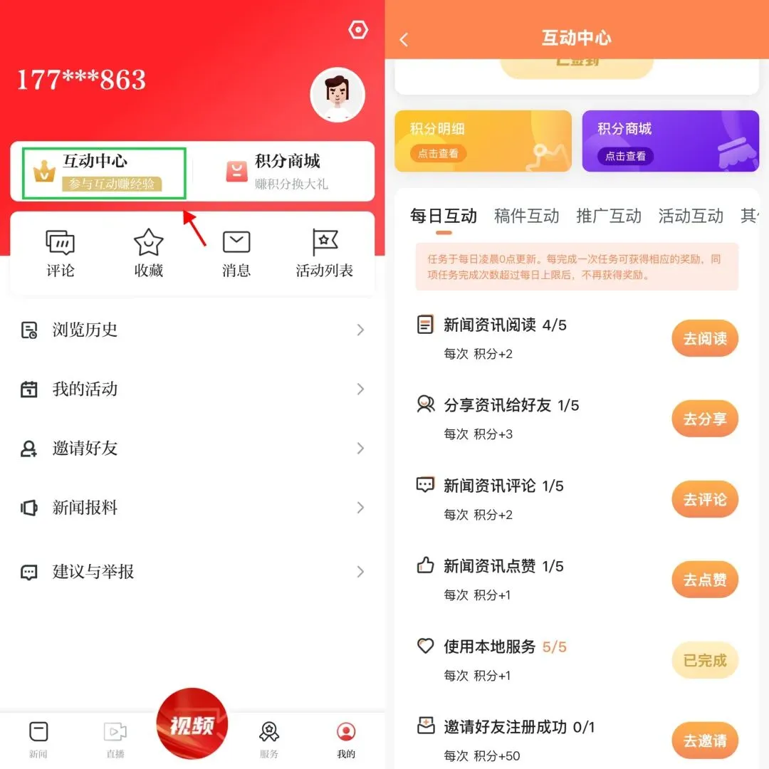 互动中心做每日任务