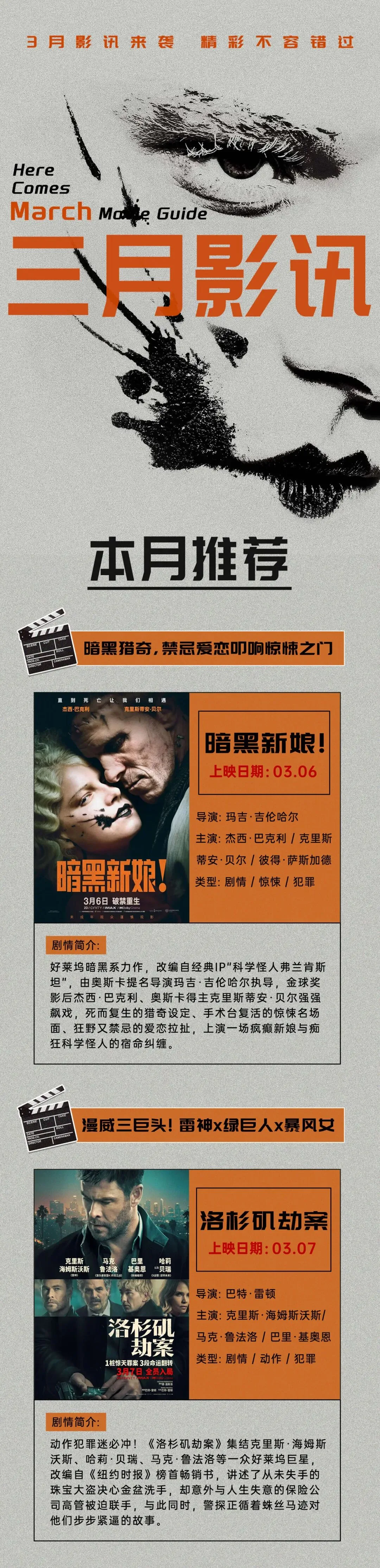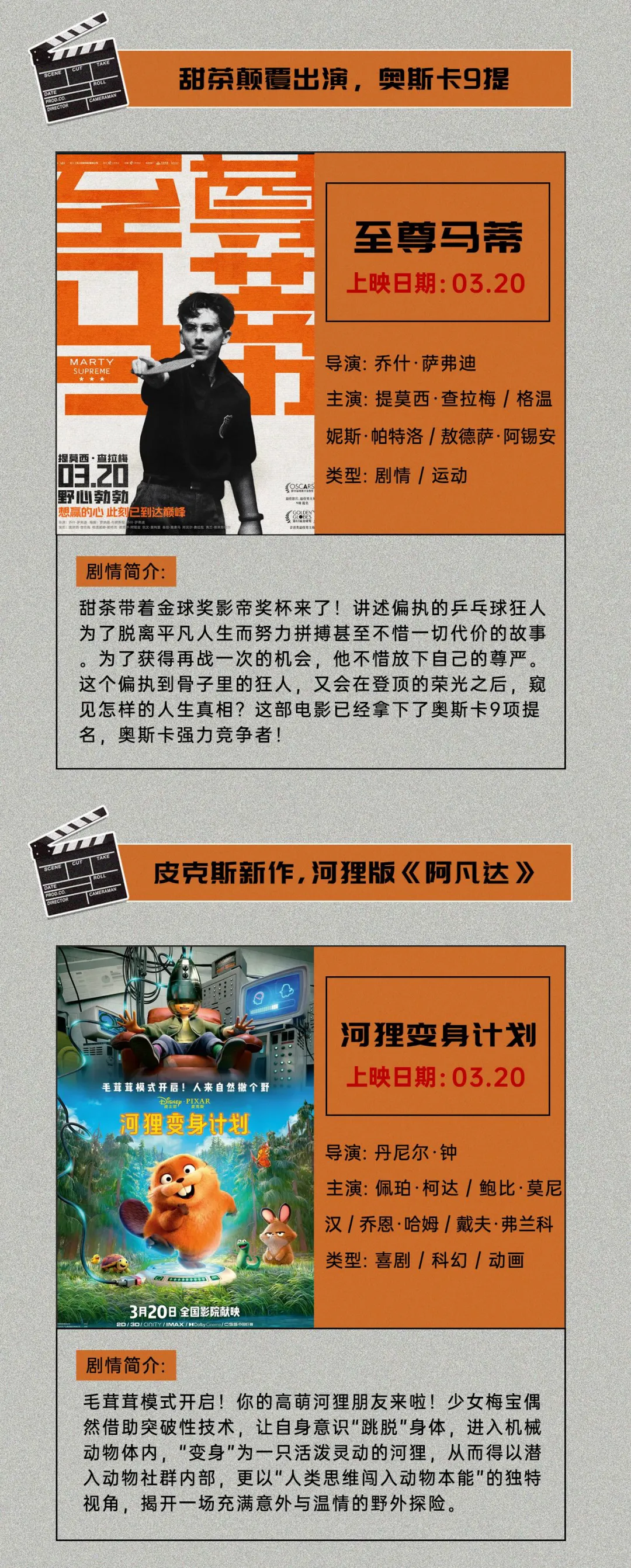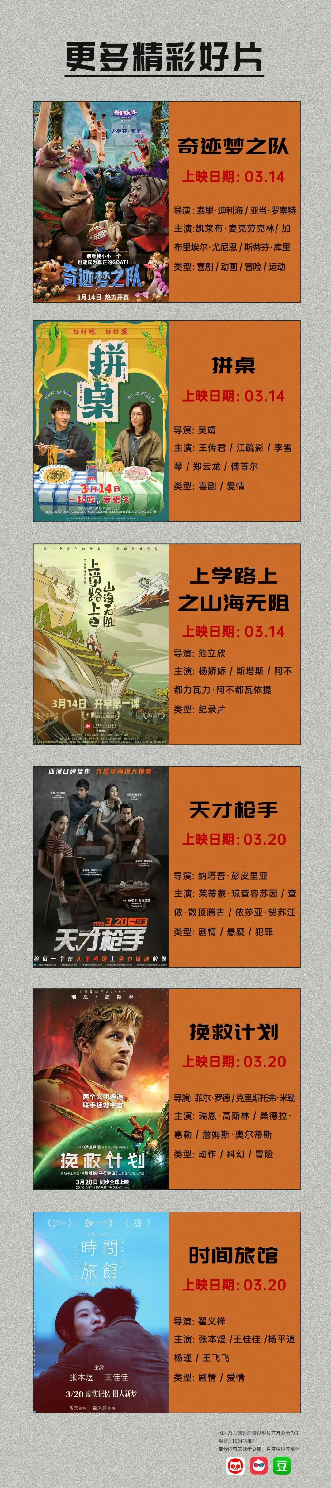 春暖花开的3月,新片不断,惊喜连连。有进口大片的震撼特效,也有小众文艺片的细腻情感。准备好爆米花,跟随我们的影讯,一同开启3月的光影之旅 。