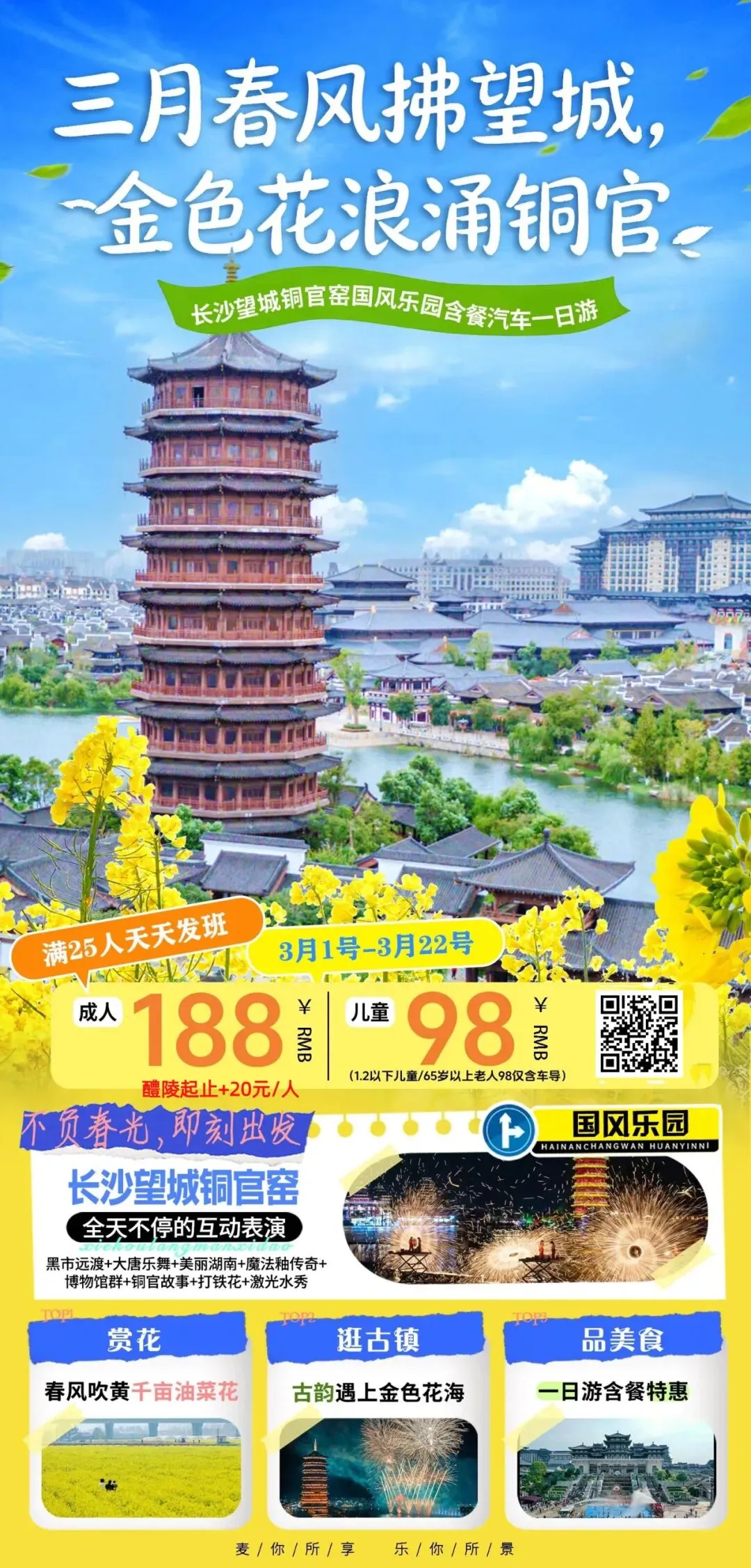 ✅ 赏万亩油菜花海 + 铜官窑全景