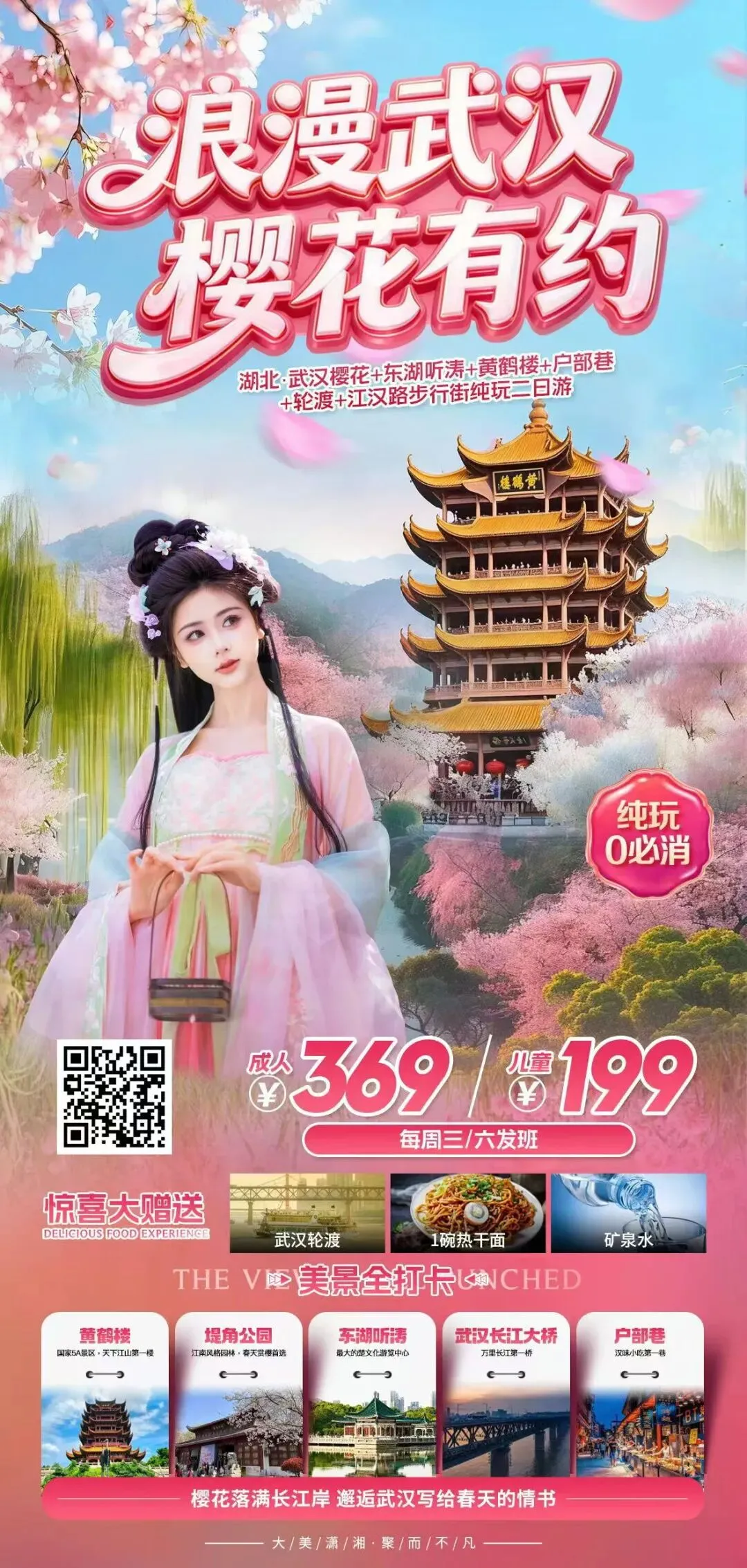 🎉 湖北·武汉赏樱花、户部巷、轮渡、江汉路步行街汽车二日游