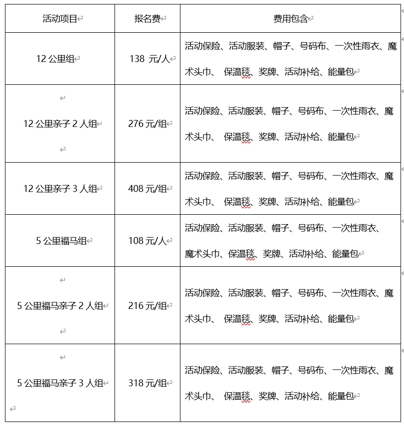 活动项目:12公里组、12公里亲子2人组、12公里亲子3人组、5公里组、5公里亲子2人组、5公里亲子3人组