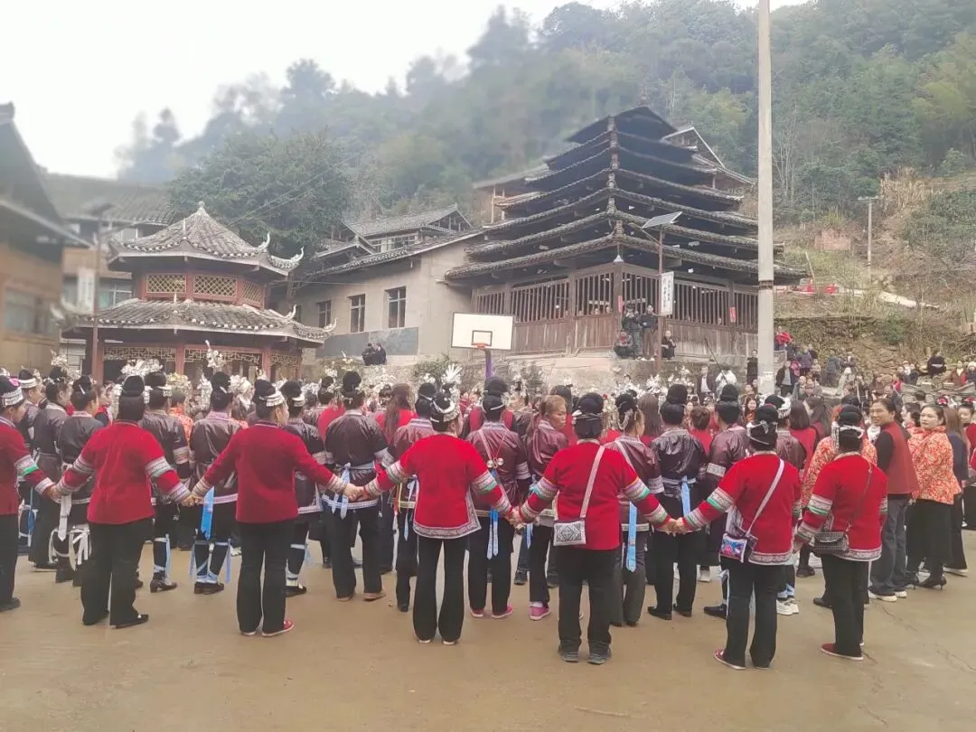 好在天公作美,整个活动很完美。这真是一个惬意的暖冬,正月气温基本保持在10℃到20℃间,还没有下雨,给大家走亲访友,搞娱乐庆祝提供了便利。从正月初二到初六这几天,我们在淳秀和龙溪这对兄弟树姊妹花之间饱尝了各类盛宴,参与许多活动,色香味俱全的侗家美食血红、牛瘪、腌鱼等让我大块颐朵。酒桌上大家边喝边唱,真应了赞誉侗家人“饭养身,歌养心”这句话,确实感受到前所未有的热闹和温暖。