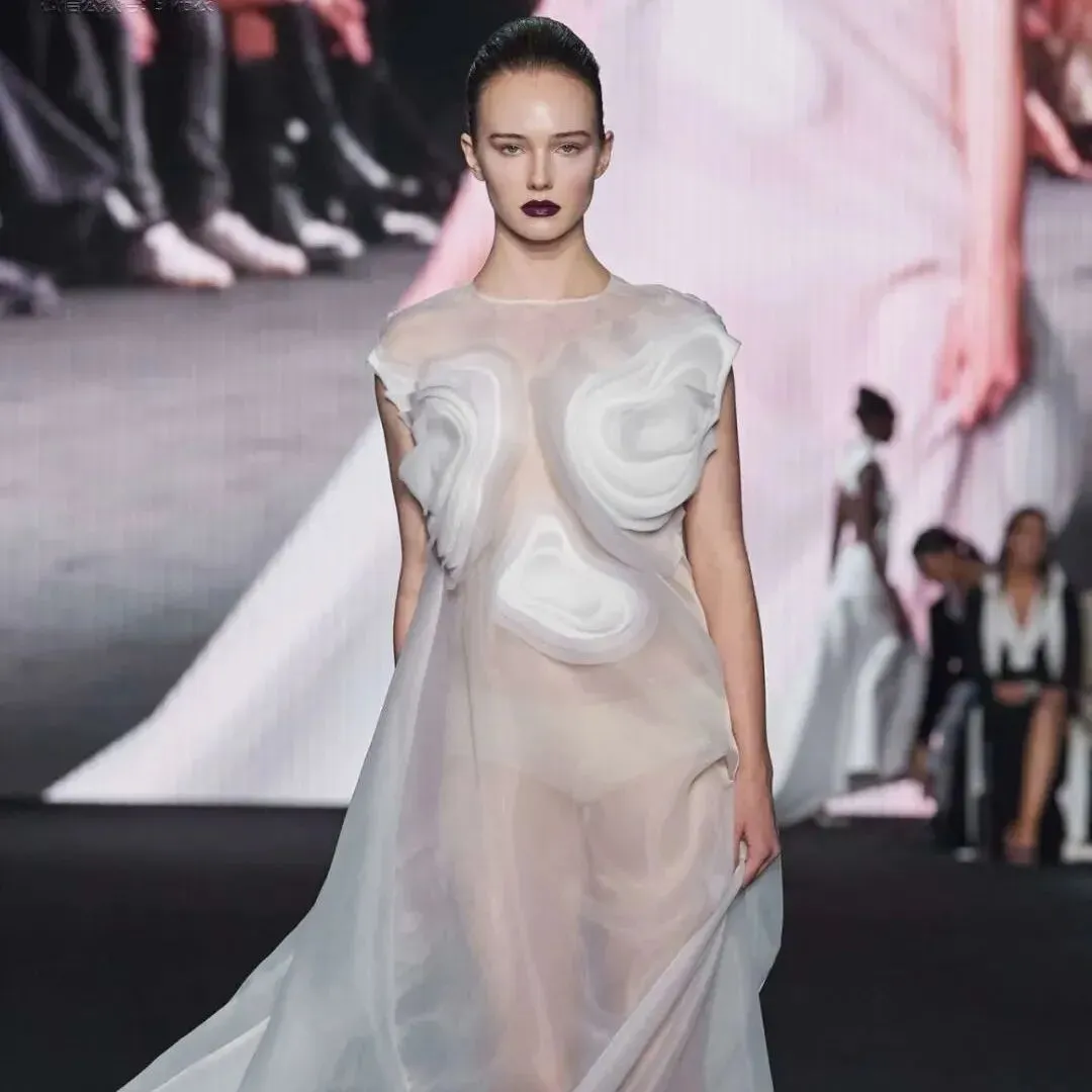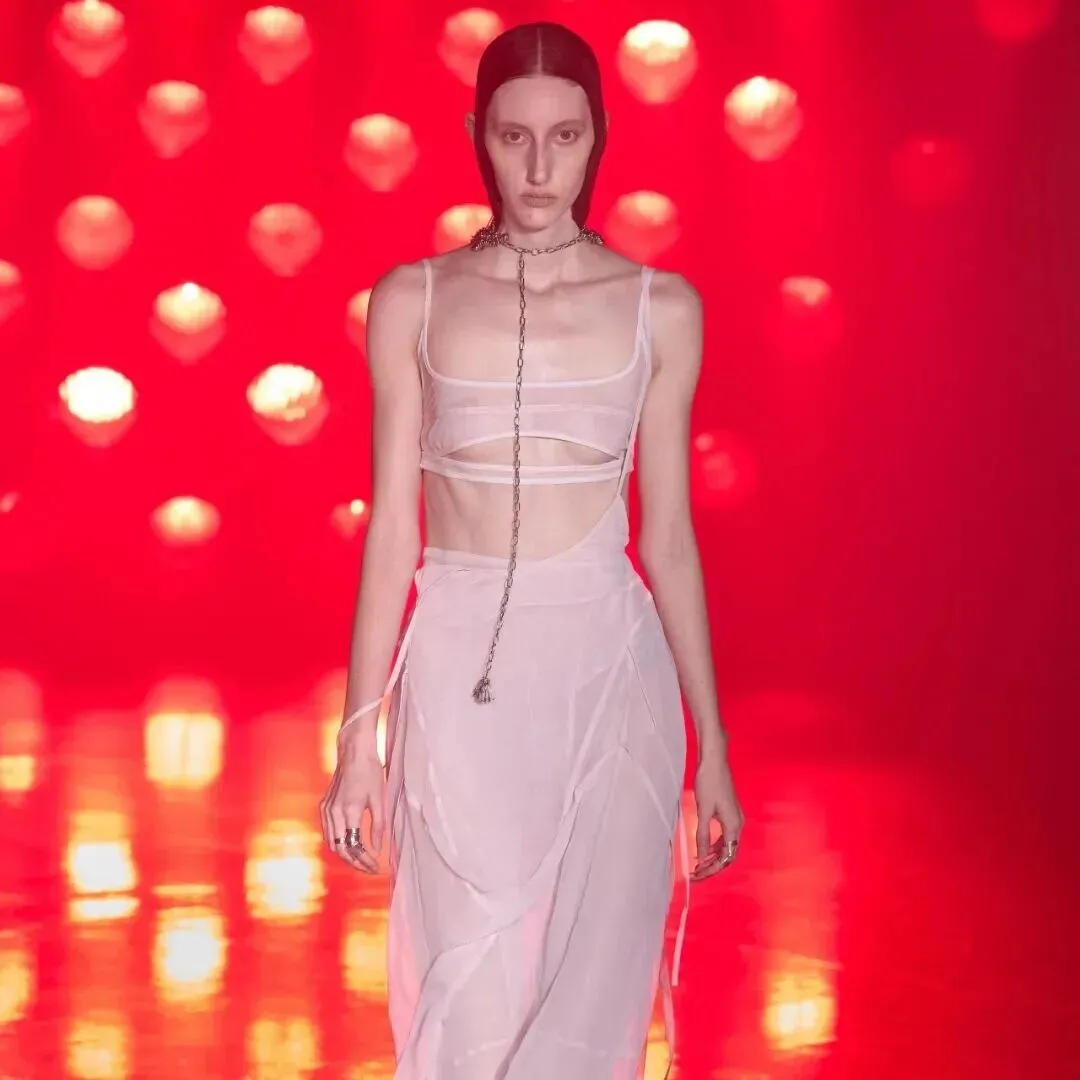 光膀女模单手捂住了“关键点”,有一股薄纱轻盈朦胧感 | Ernesto Naranjo 2026春夏系列