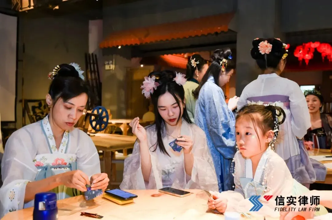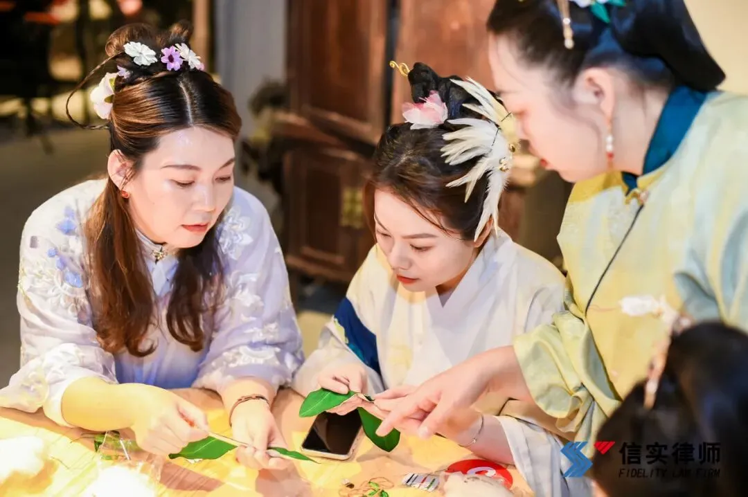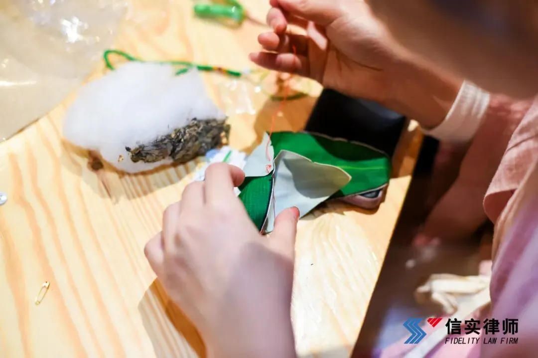 随后,大家围坐在木桌前,体验古饰制作。一片小小的扎染棉布,一根银针,一缕丝线,串起了古今女子不变的蕙质兰心。大家动手缝制了独具个人特色的香囊,玫瑰与艾草的香气交织。心灵手巧的信实女神们将对生活的美好愿景缝进小小的香囊之中。