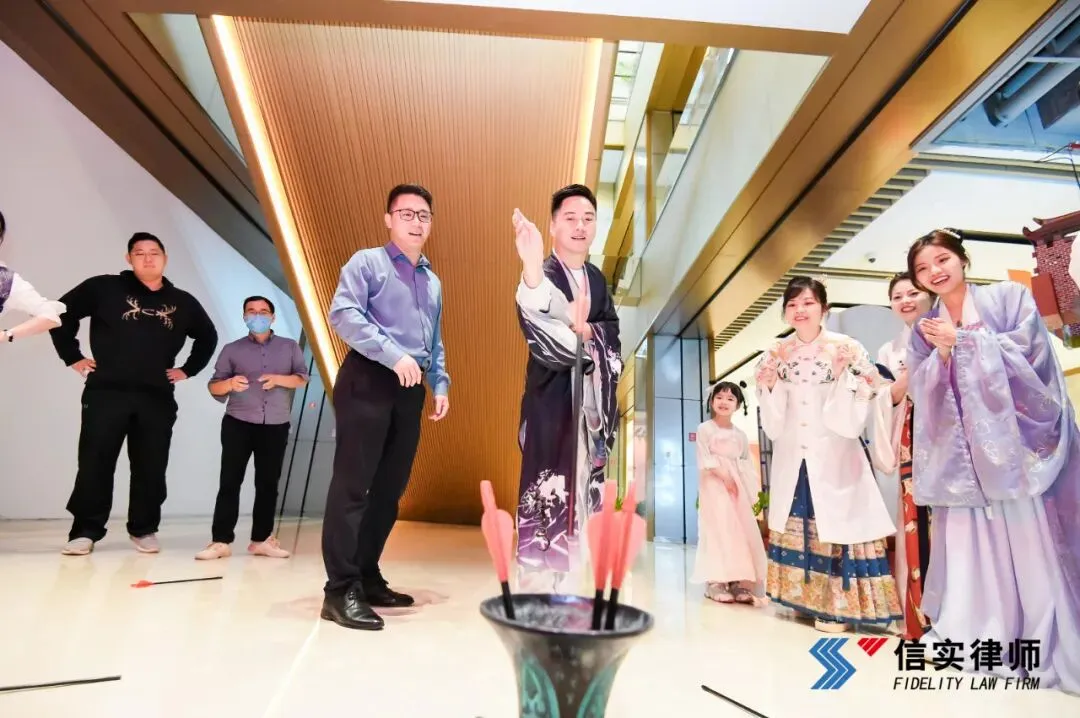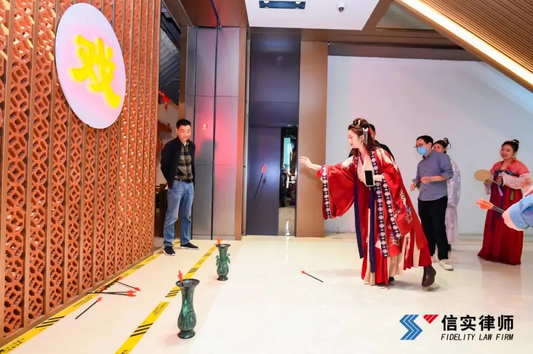 另一边,信实的男神女神们正在比赛投壶,不时发出阵阵欢呼声,引人瞩目。两尊铜壶,九支箭矢,胜负一线,笑声一片。箭矢飞射间,仿佛穿越时空,带我们领略古人的闲暇逸致,也让现代“打工人”们暂时忘却了工作的疲惫。