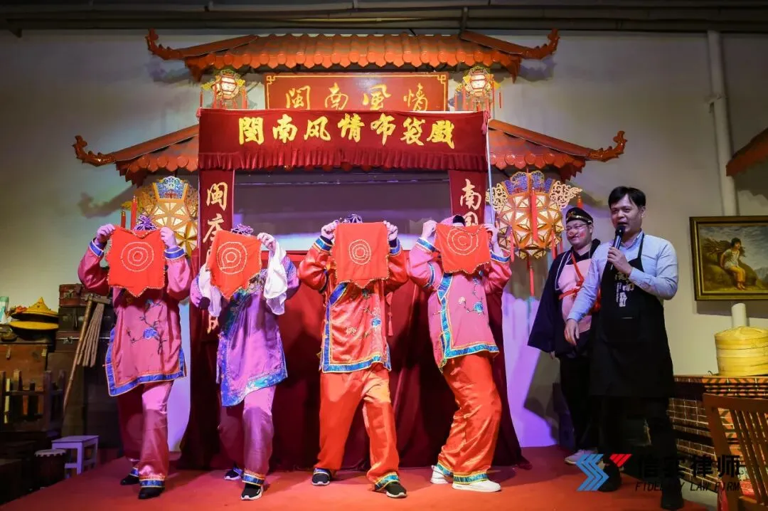 众人稍作休息,一起观看了精彩的布袋戏表演。技艺高超的布袋戏艺人用灵巧的五指,操纵不同的木偶,配合着欢乐的音乐,甩水袖,舞长枪,栩栩如生,惟妙惟肖。表演结束,布袋戏艺人来到台前,带着观众练习手指操。手指上的酸痛提醒着我们,“台上一分钟,台下十年功”,短短十分钟的表演,凝聚着布袋戏艺人数十年的心血。