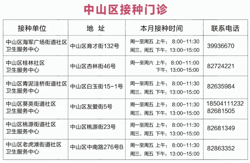 接种地址:老虎滩街道社区卫生服务中心预防保健部(中南路276A)