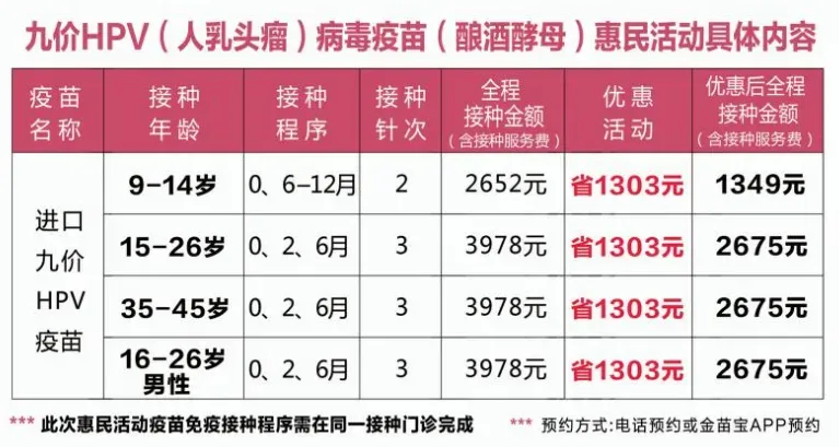 九价 HPV 疫苗:2026 年 1 月 20 日 - 9 月 30 日(以首针接种日期为准)