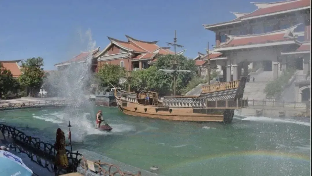 【观大型沉浸式室外实景演艺《海战风云》】,真刀真枪的大型沉浸式实景演艺,故事主线以明朝著名的“料罗湾海战”展开。20吨重可升降巨型战舰,爆炸水炮26门红衣大炮6门,32.3米高三面妈祖,获得研发机械装置专利2项。大型室外实景演艺《海战风云》绝绝子!