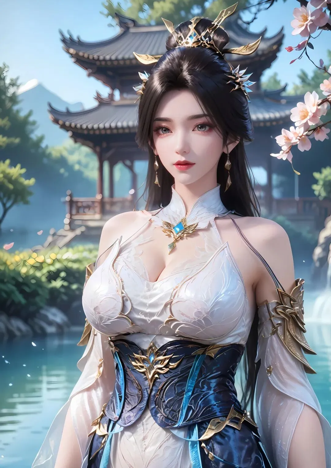 眉眼间的清冷被端庄取代,杏眼澄澈而深邃,瞳仁是纯粹的墨黑色,眼底藏着沉稳与智慧,看向弟子时,眼底会泛起淡淡的期许与严厉,既负责又温柔;面对强敌时,眼底会泛起凌厉的锋芒,沉稳而不慌乱,尽显强者的底气。眉形依旧是柳叶眉,眉色是淡雅的黛色,自然舒展,不添凌厉,只衬得眉眼愈发端庄雅致,眉尾微微下垂,添了几分温柔,完美诠释了“外冷内热”的特质。
