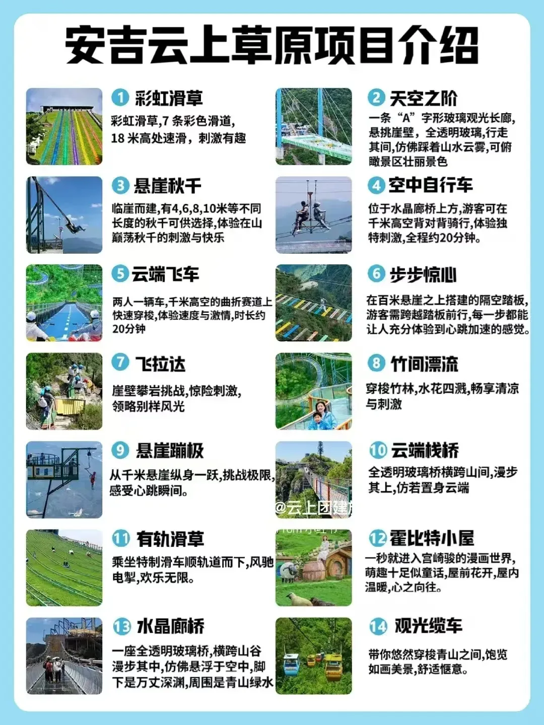 更有以天空为主题的无动力滑草乐园,有彩虹滑草、云中部落、无动力探险等。