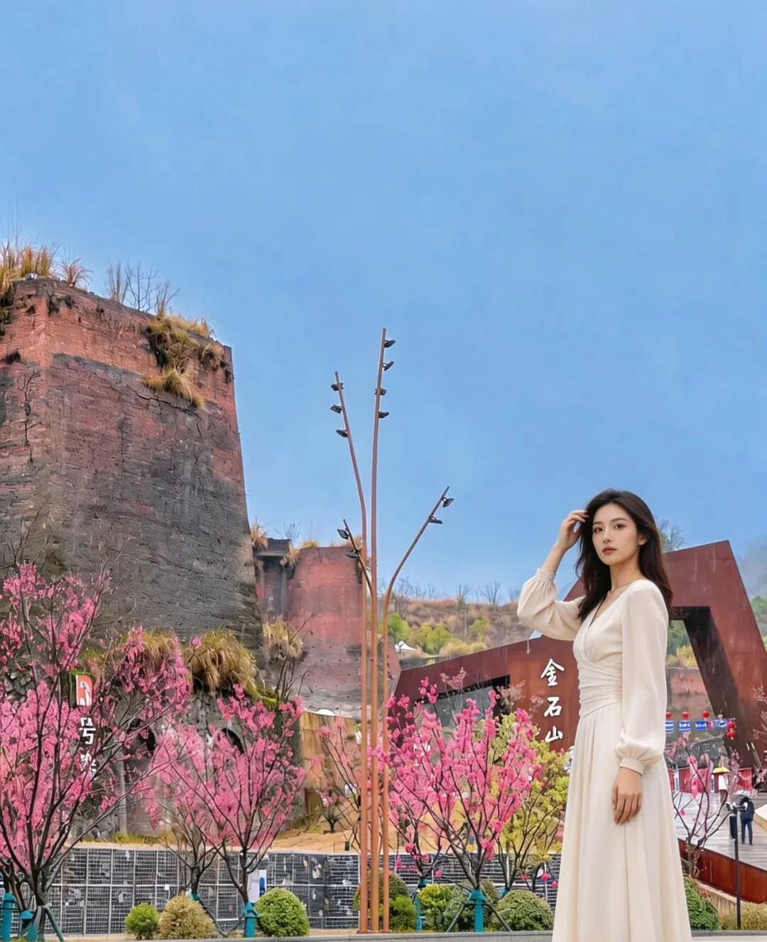 浪漫缱绻的粉、清艳动人的红…… 千朵樱花漫染金石山,为春天写下最动人的诗篇。
