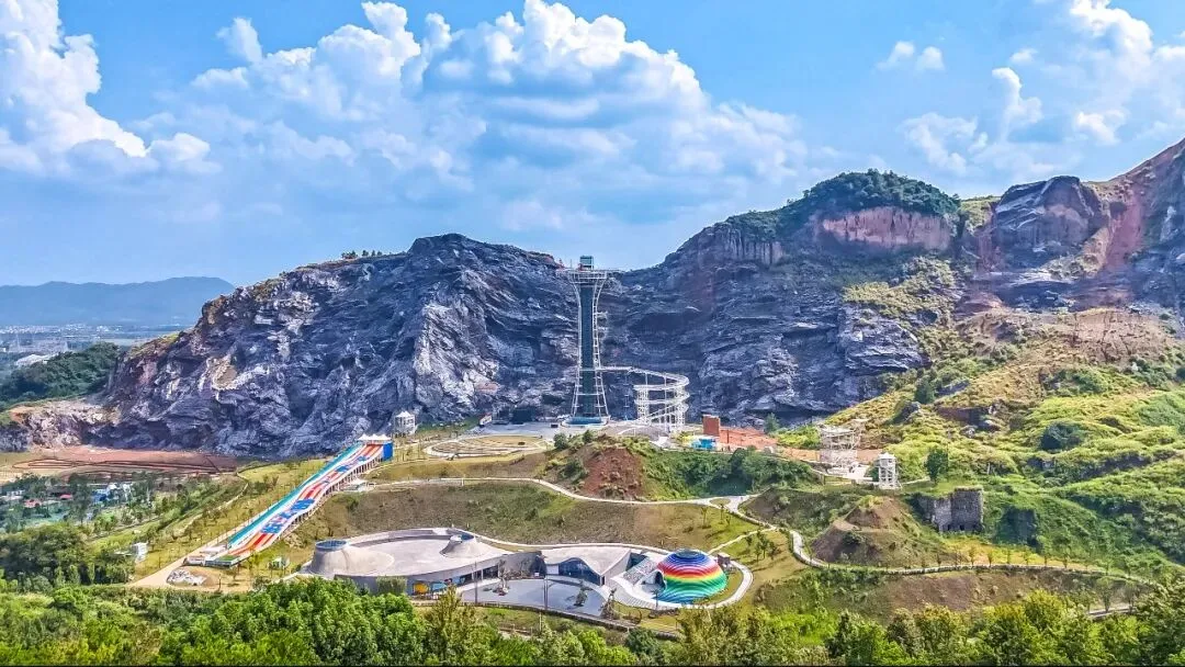 依托金石塔的落差而建,透明玻璃滑道穿梭于山崖下,坐上皮筏,从高空俯冲,感受湍急水流与 360 ° 环形盘旋的刺激,尽览景区山野风光。