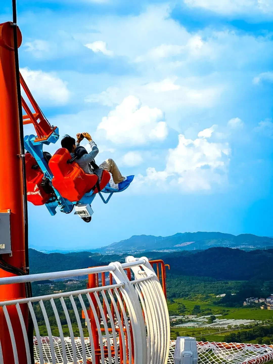悬崖峭壁之巅,秋千如雄鹰展翅般荡出。坐上它,瞬间冲向天际,又倏忽向下俯冲,心跳与风竞速,刺激直抵灵魂深处。