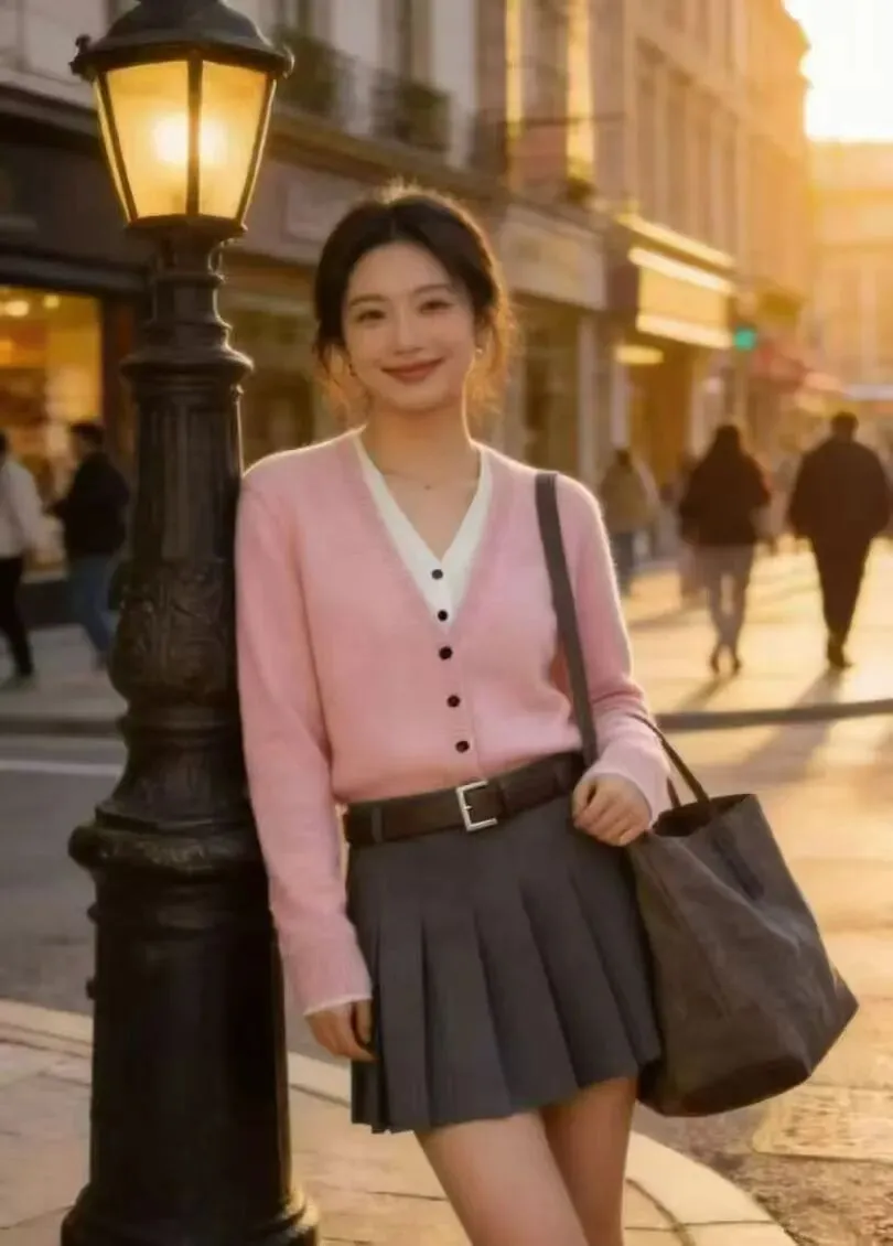 浅蓝轻软机能风外套+短裙,谁看了不夸一句亲信活力