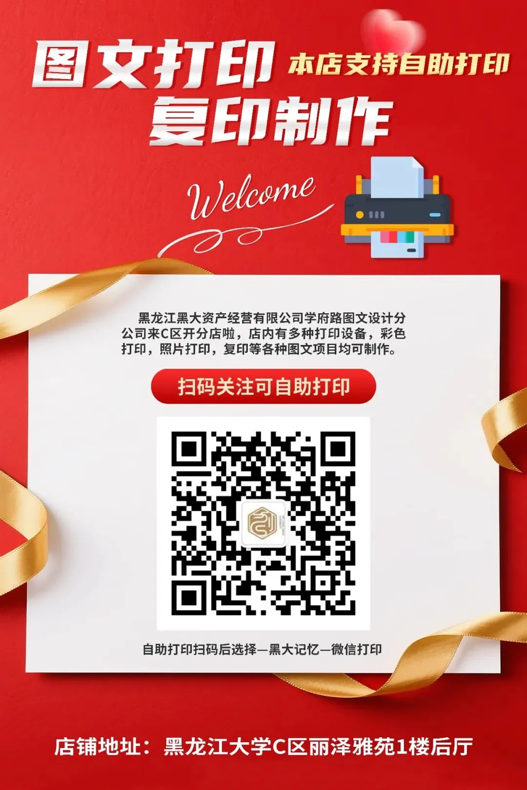 还有一个好消息是我们的文创二店在C区开业了,地址是丽泽雅苑一楼。店里还可以打印、复印、云上打印等多种服务,欢迎宝子们来逛一逛~