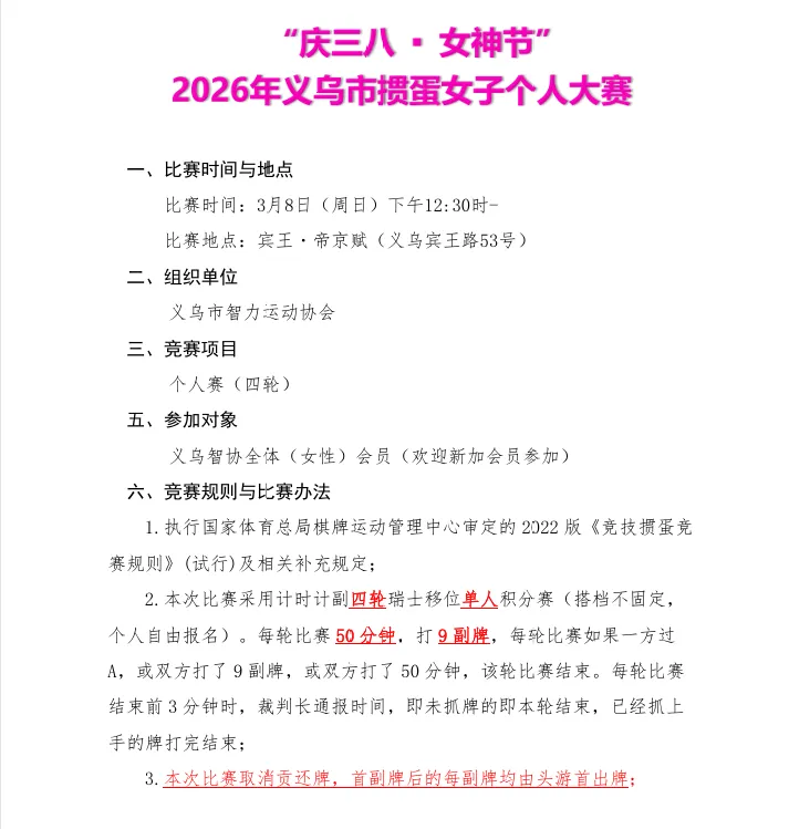 当前位置:首页>美女资讯>“庆三八 女神节”-2026年义乌市掼蛋女子个人大赛