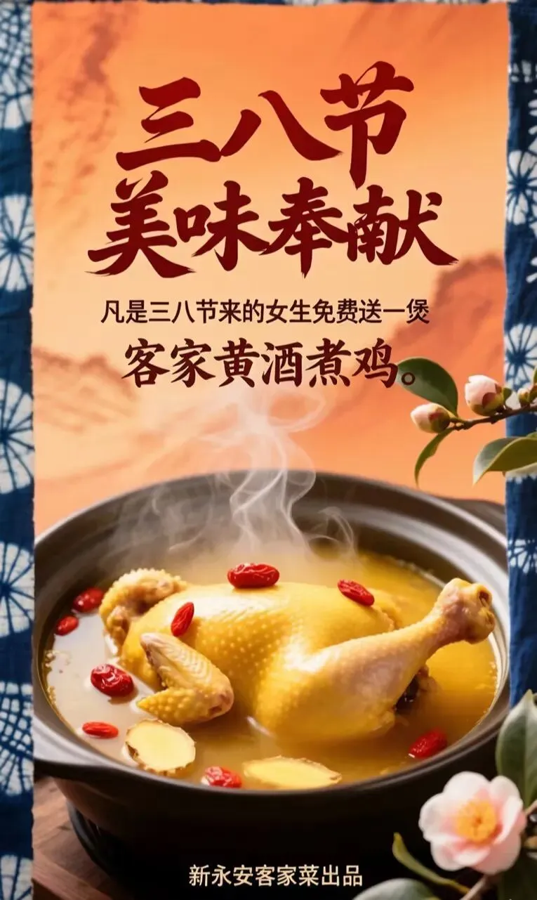 女生到店即送 客家黄酒煮鸡一份(需预约)