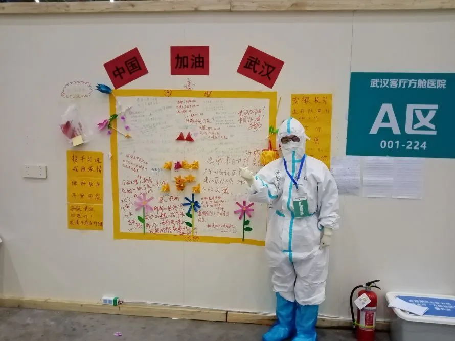 “大家都认为武汉是一个危险的地方,来这里就是上战场。但是固然前方有很多未知与危险,作为医务人员的我们必须无畏前方,去攻克那堵墙!”