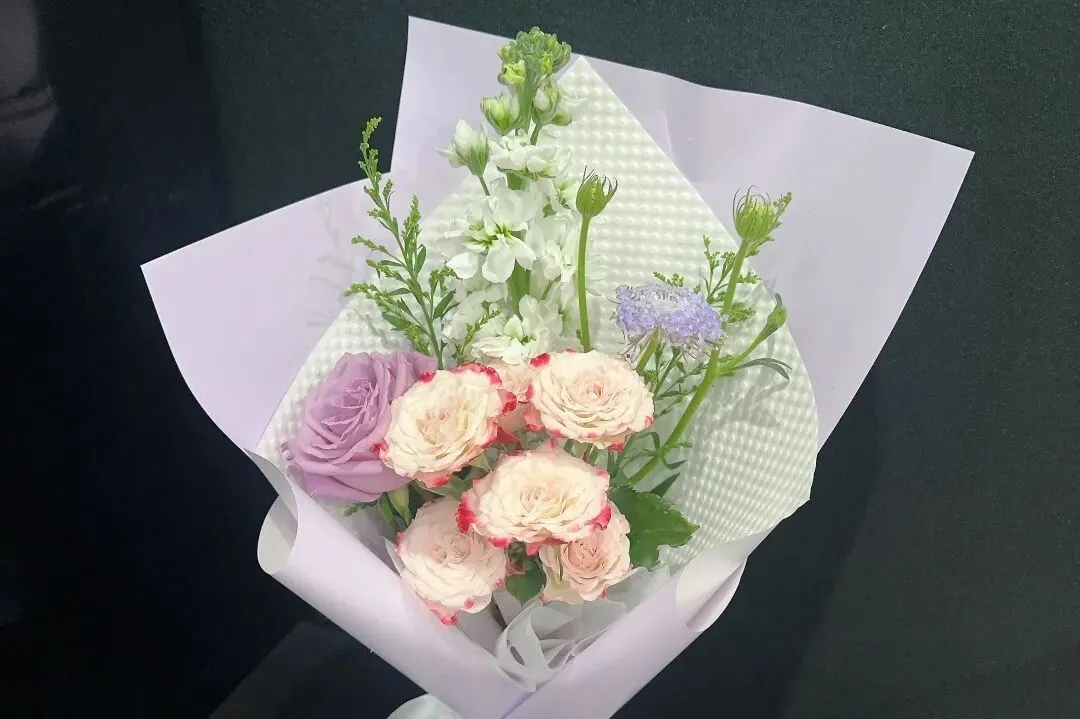 左花:当季鲜切花多头玫瑰/康乃馨/紫罗兰.).....每一朵花都承载着专属心意。
