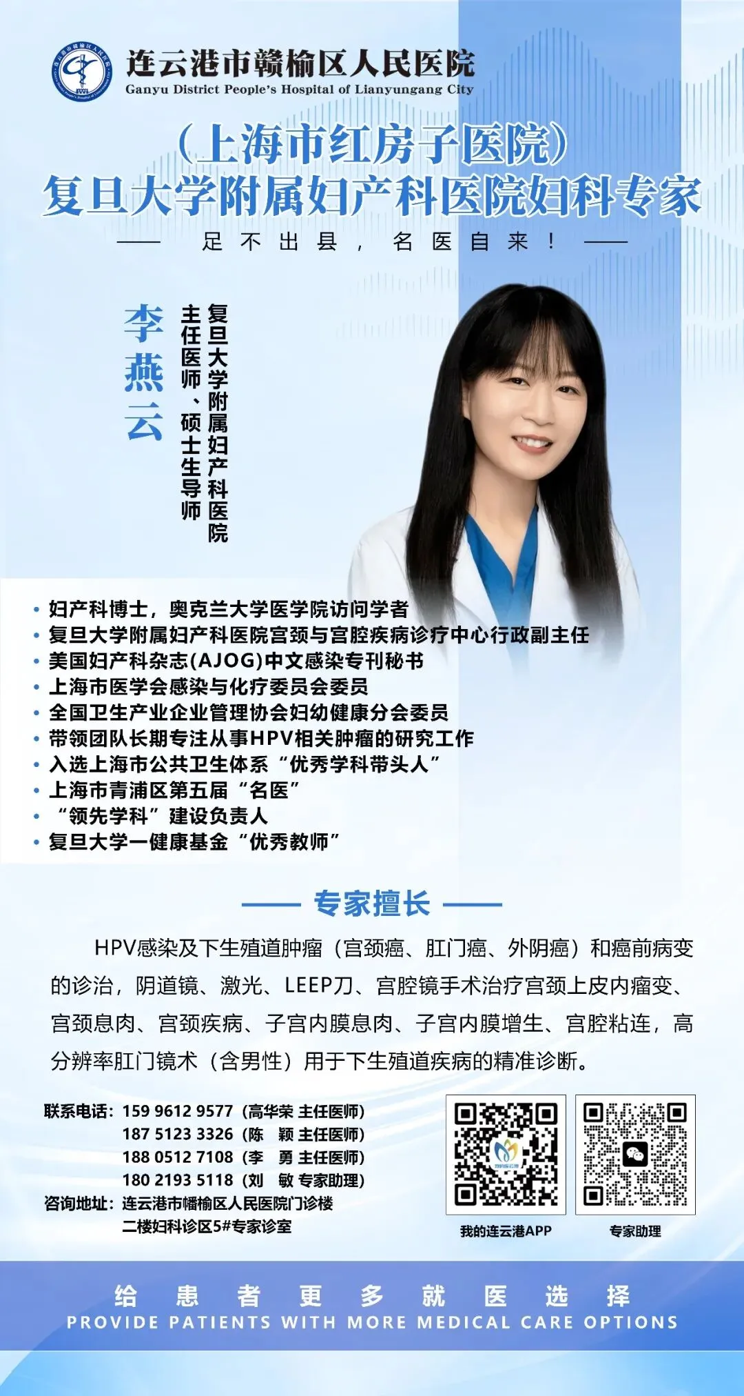 坐诊地点: 赣榆区人民医院妇科诊区5室