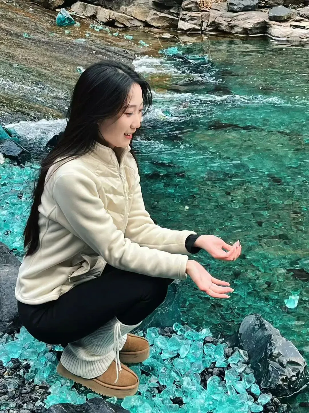 从三岔河步道往下350 米,就踏入了被温柔包裹的幻梦谷。黑红玫瑰、蓝色冰面、巨型雕塑,每一步都是电影级画面。