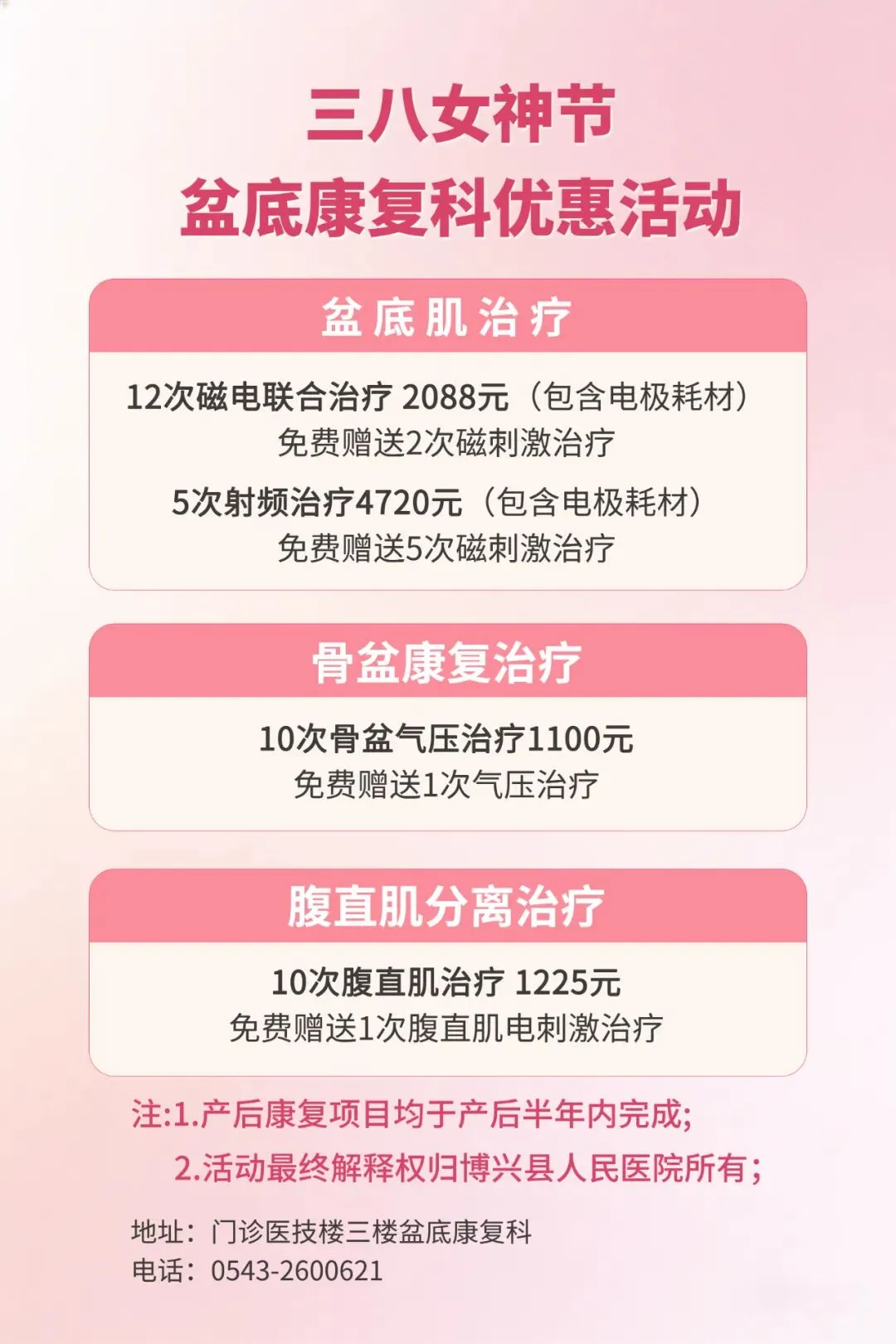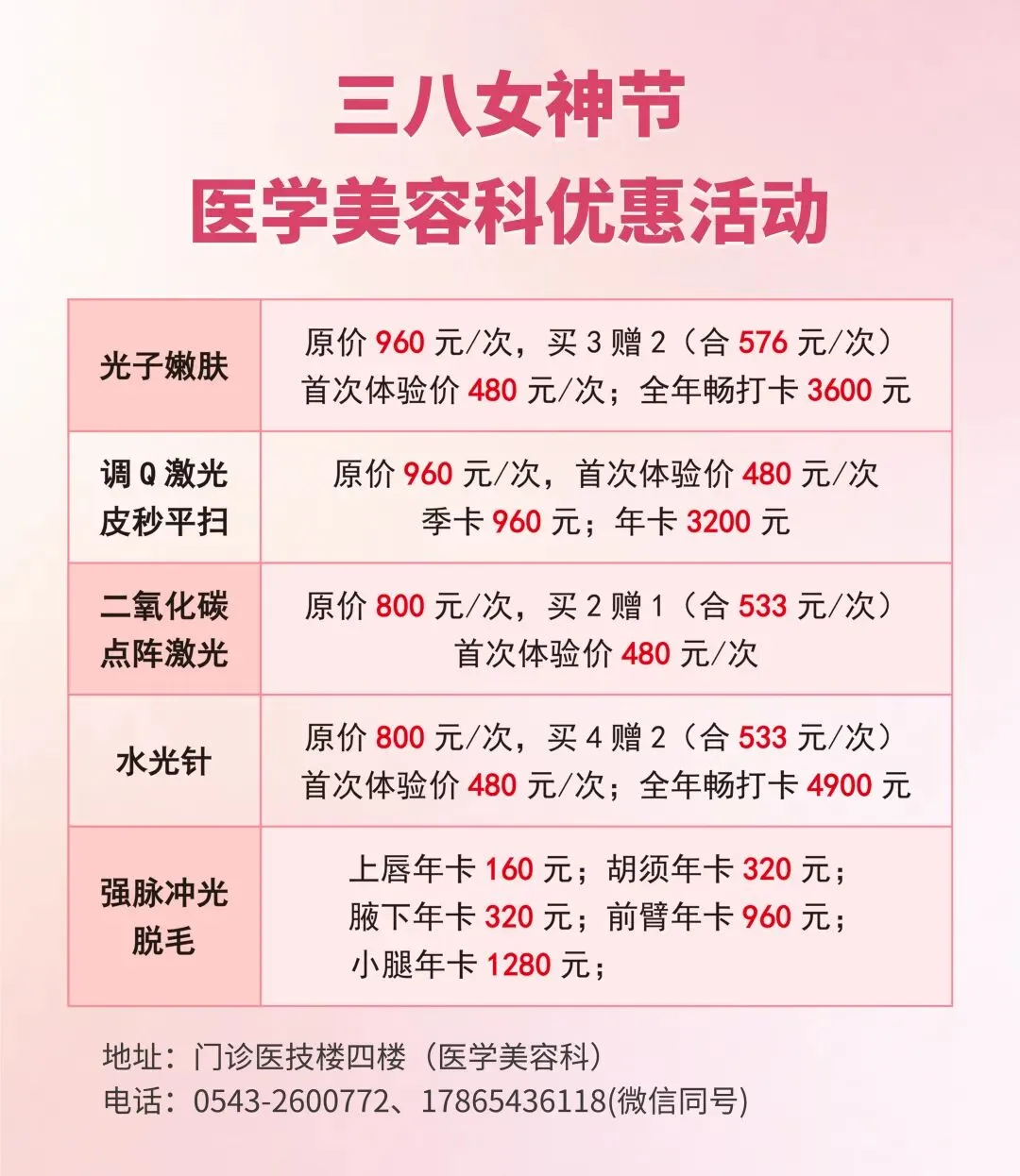 “女神节”祝福送不停!医学美容 中医护理 孕婴产康 健康体检“多重”福利尽在博兴县人民医院
