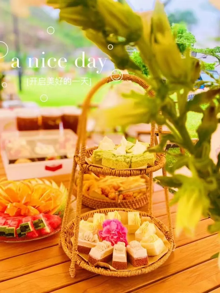 农场春日茶事:可选围炉煮茶,陶罐煨老白茶,炭火煨着农场鲜果;或享用备好的田园茶歇,木托盘盛着美味点心,青草托起慵懒云絮。风过时,茶香与阳光一同签收。