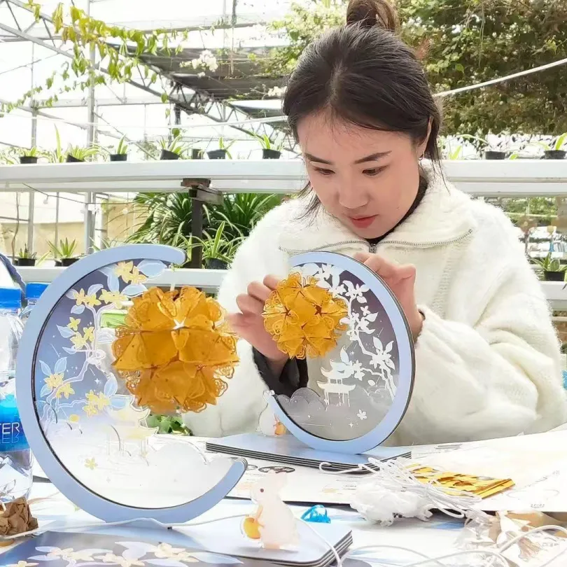 挑薄如蝉翼的干花在亚麻灯罩上构图,镊子轻推花瓣调整弧度。UV胶点滴加固叶脉,指腹温热加速凝固。女神们亲自DIY一盏台灯,看到花影在光晕中舒展,摇曳着亲手封存的春日。