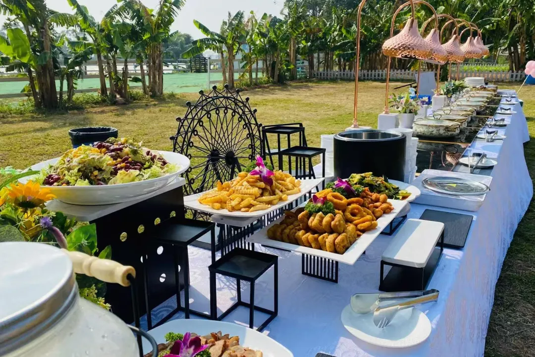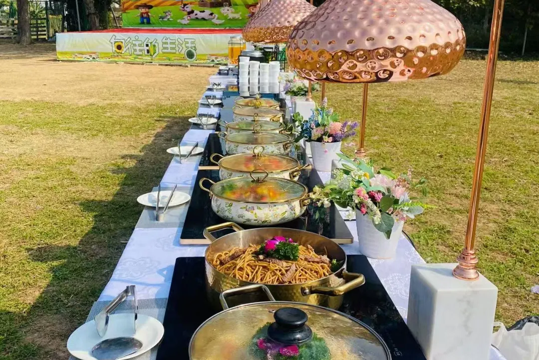 高端田园自助餐置身绿意环绕的农场,开放式餐台呈现中西融合风味,丰富的菜式让人琳琅满目,品最新鲜美味的食材,女神们在自然谧境中品味精致慢食美学。