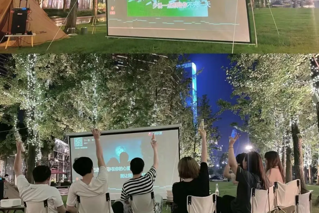 在美好的环境下,忘记时间,体验一次田园K歌,跟着音乐节奏,尽情的歌唱,你一句、我一首,大家一起放肆地唱,一起在草地上随着音乐的节奏自由舞动,拍拍照片,喜欢的歌慢慢唱、喜欢的事尽管做,
