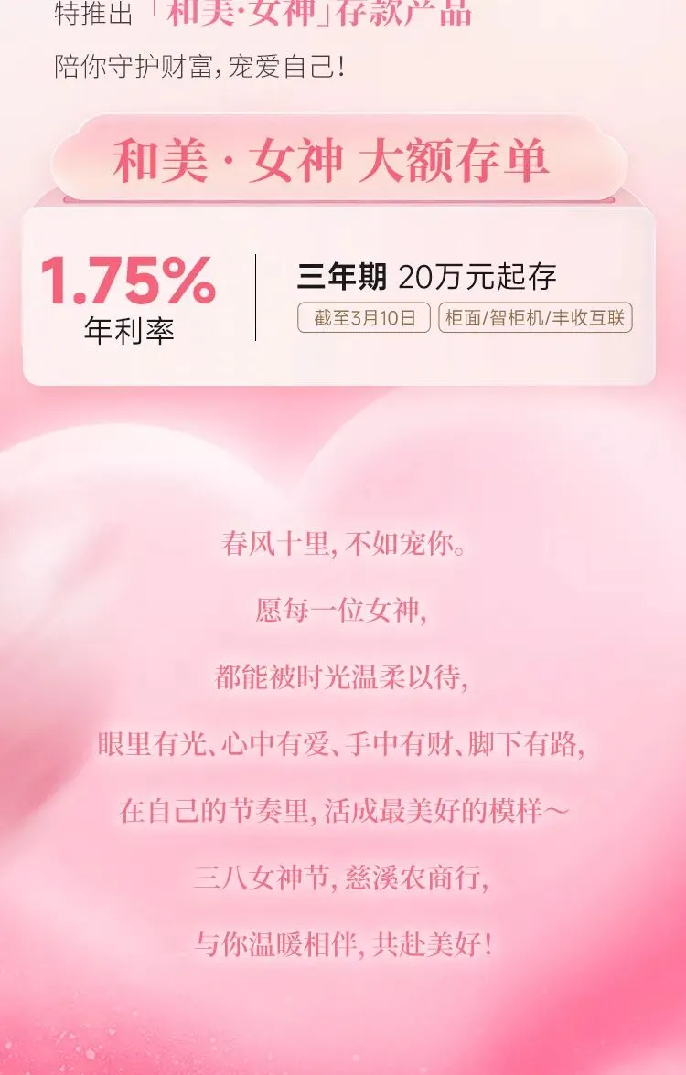 当前位置:首页>美女资讯>女神节大额存单,暖心上线!