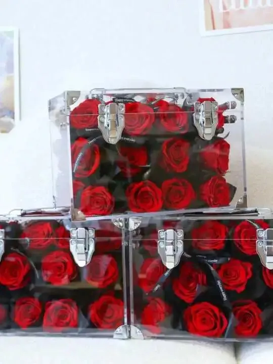 红玫瑰自带炽热氛围感,99朵玫瑰花心意满满,透明亚克力箱设计高级感拉满!