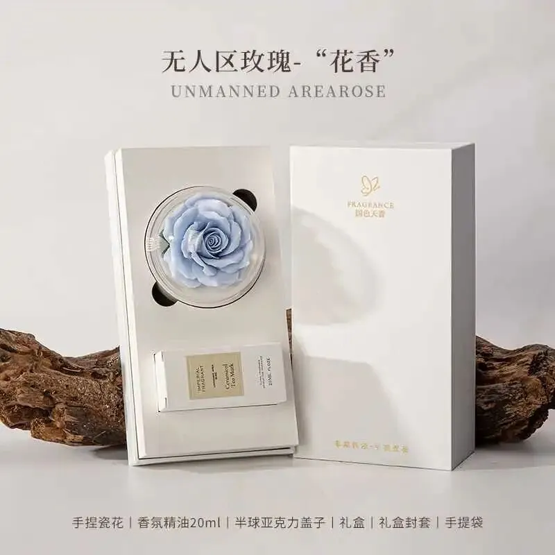 手捏粉玫瑰永生花+香氛精油,木质香调高级不撞款!