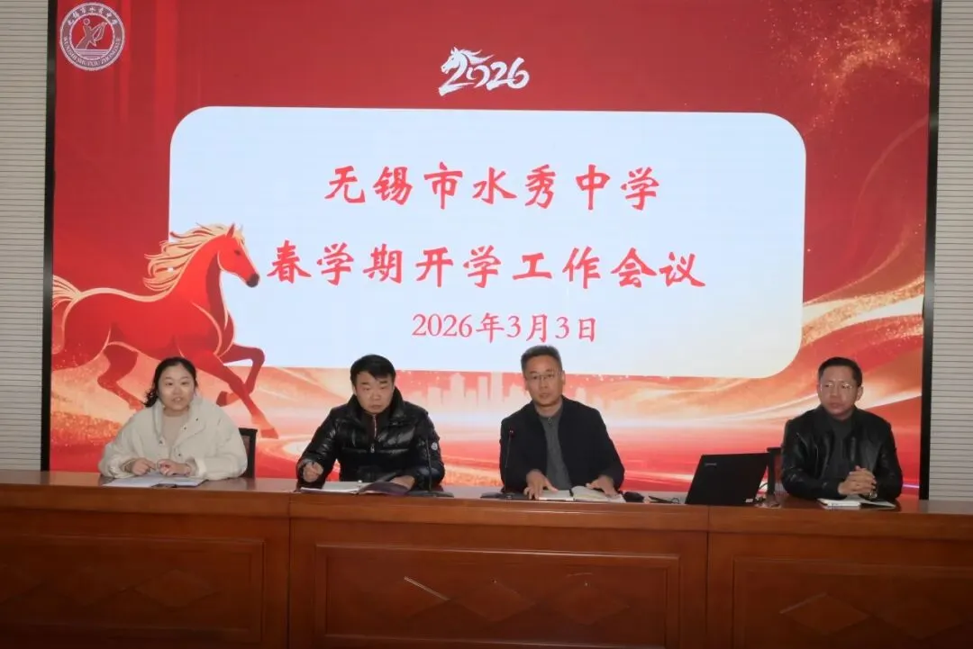 3 月 2 日上午,无锡市水秀中学召开2026学年春学期第一次行政工作会议。会上,全体行政人员围绕新学期工作重点、教学安排、校园安全、德育管理等工作统筹规划、细化分工,明确工作目标与推进路径,为新学期各项工作定基调、明方向。