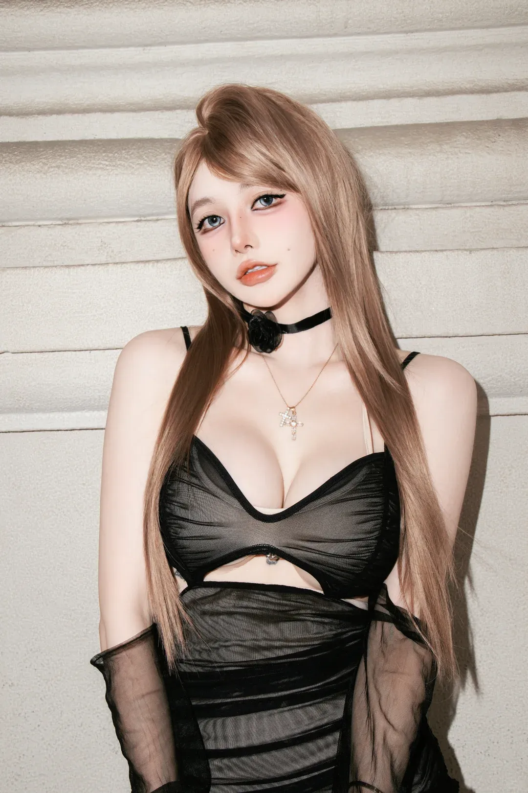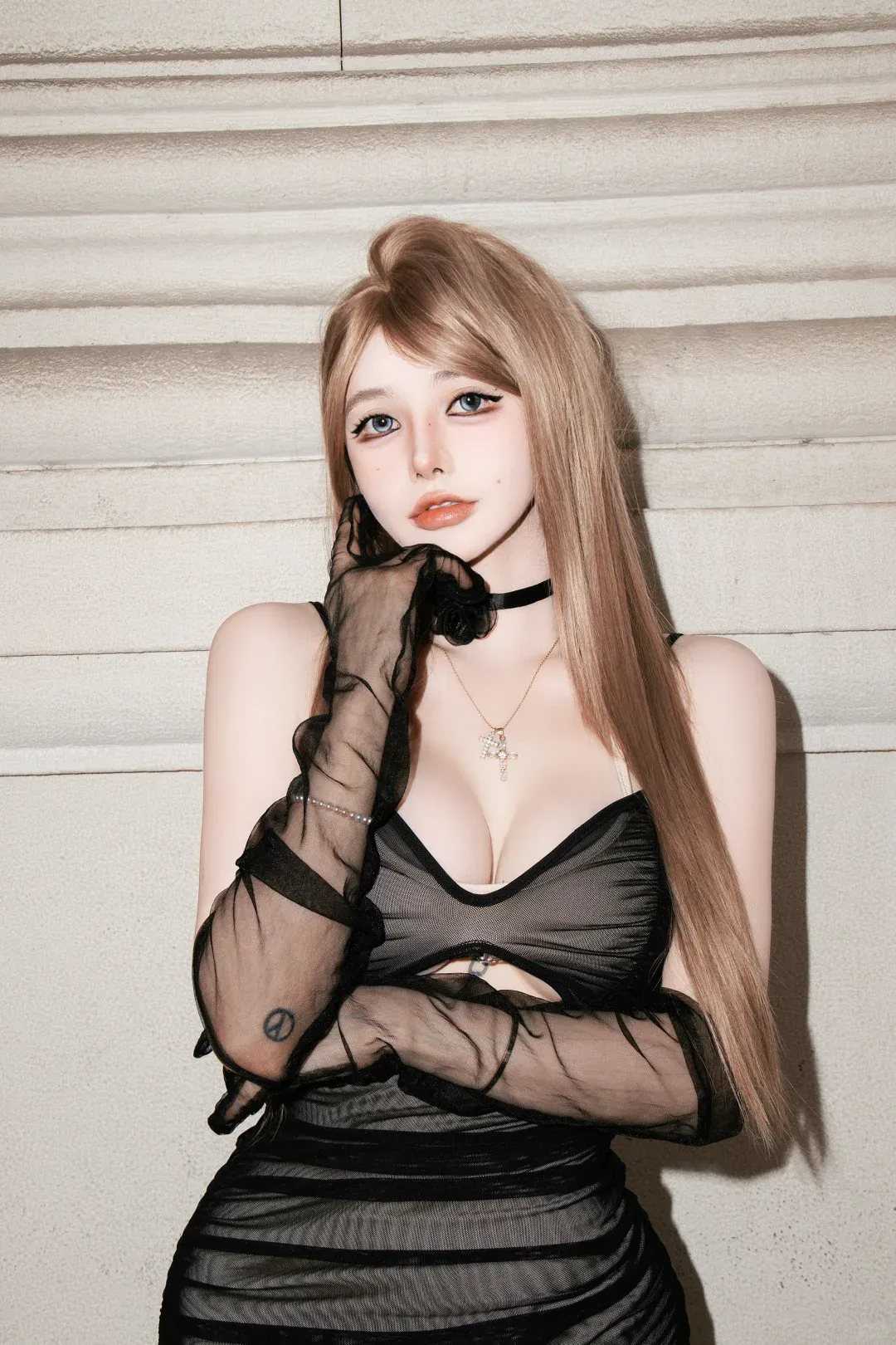 直到去年加班到凌晨,在公司楼下便利店看见个穿酒红吊带的姐姐,踩着细高跟拎着关东煮,跟老板笑着说 “加俩鱼丸,今天稿子过了”—— 那瞬间我突然醒了:“得体” 哪是别人定的规矩?是我把 “让所有人舒服”,当成了自己的任务。后来我开始慢慢 “抢地盘”:先从涂正红色口红开始,再到穿露肩衫开会,直到今天套上这双细高跟的鞋,坐在天桥边看车来车往。风把头发吹乱的时候,我摸了摸脖子上的项链,突然觉得 “好看” 哪儿是为了吸引谁啊?是我终于敢把 “我喜欢” 写在身上,像给心脏穿了件铠甲。前几天我母亲视频看见我这身,顿了顿说 “好像比以前精神”—— 你看,那些我们怕的 “议论”,其实大多是自己脑补的戏。就像今天这双丝袜,有人觉得 “太张扬”了,可我踩着它走过天桥时,连脚步都比平时稳。