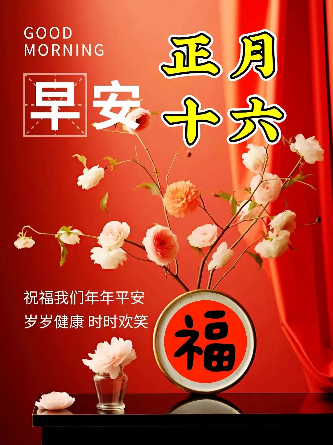 正月十六祝福到,一祝家祥和,二祝身健康,三祝事成功,四祝心如愿,五祝生活甜,六祝钱财旺,七祝友情长,八祝好运来,九祝爱情甜,十祝万事顺!早上好~!🌹❤️🙏☀️☕️