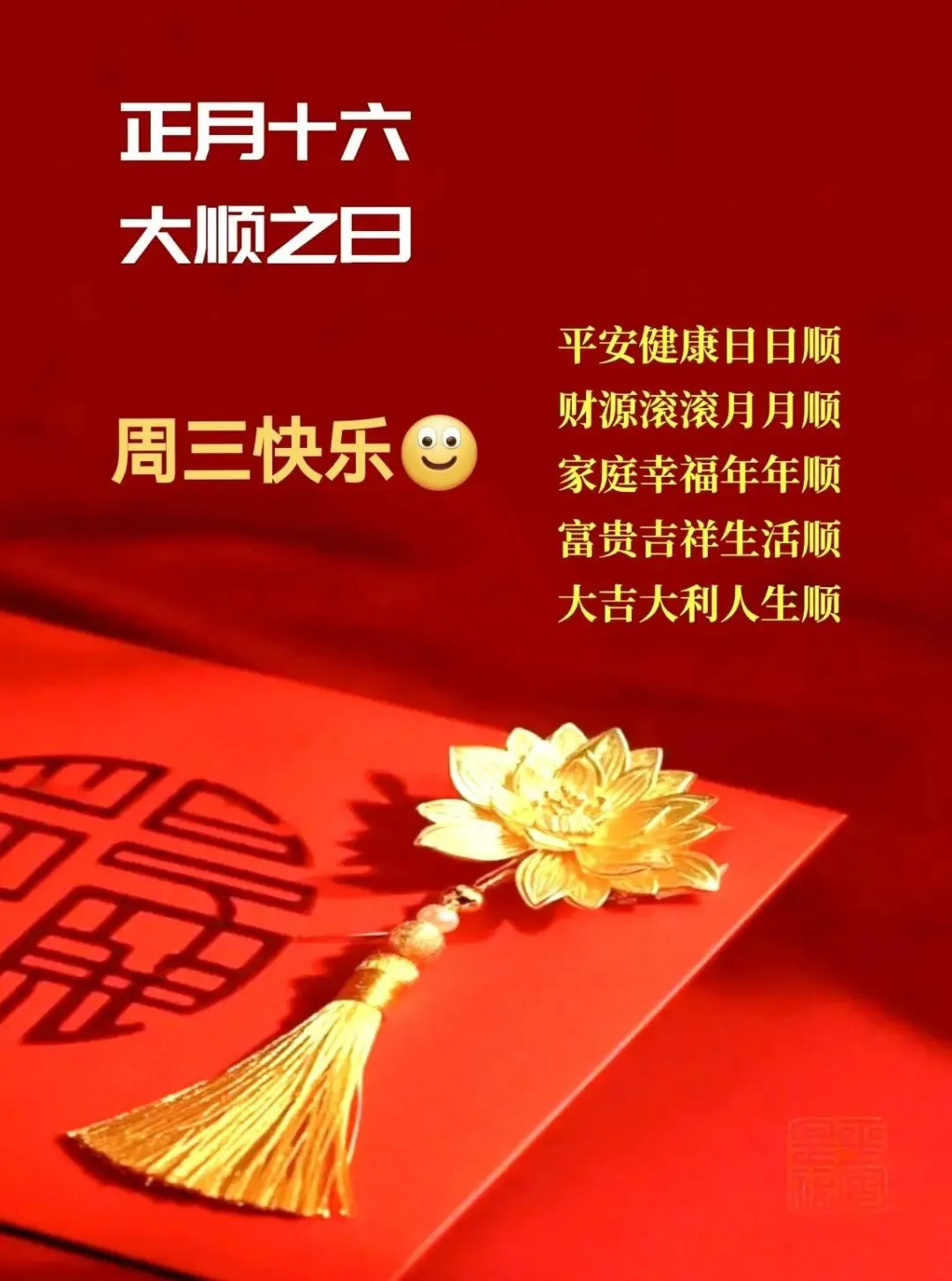 正月十六大顺日祝您:天地顺,人情顺,风调雨顺;事业顺,前程顺,一顺百顺;现在顺,将来顺,一帆风顺。早上好!🌹😊🙏☀️🍎🎉
