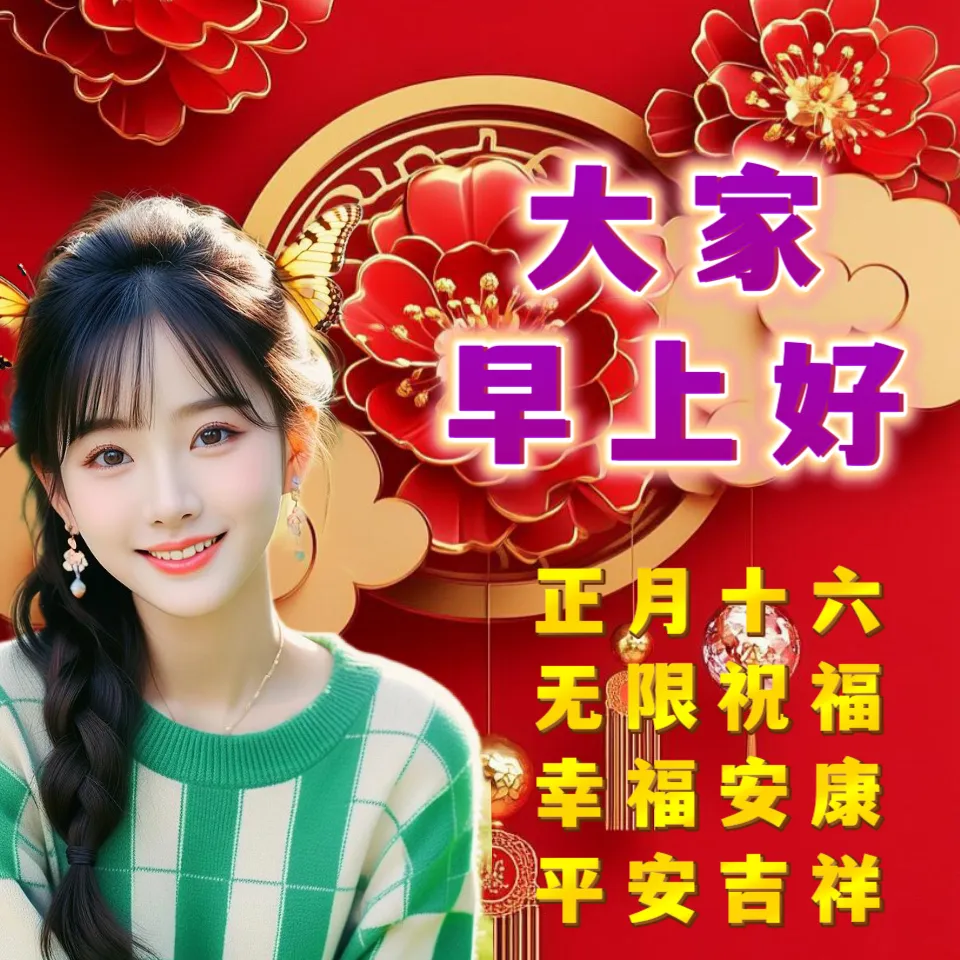 🧡🍹💐一声早安,出入平安,一句问候,健康长寿,一句祝福,家庭幸福!正月十六早上好!🎉⭐🌹