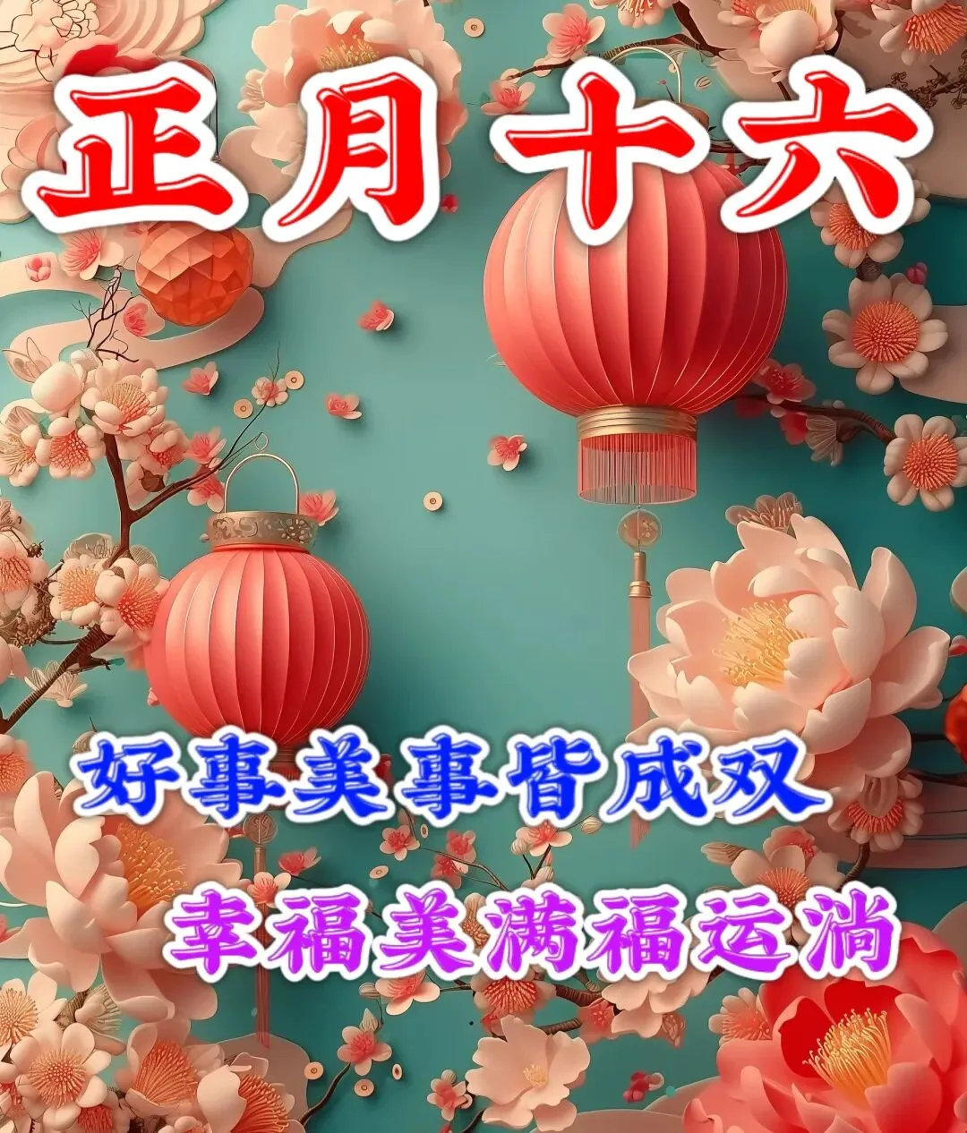 🌅正月十六,阳春暖花开,又是一年欢喜时。🎉愿你在新的一年里,事业蒸蒸日上,🌹家庭美满幸福,健康安康如意。🌸祝你新春快乐,财源滚滚,💐步步高升,吉祥如意!🍎