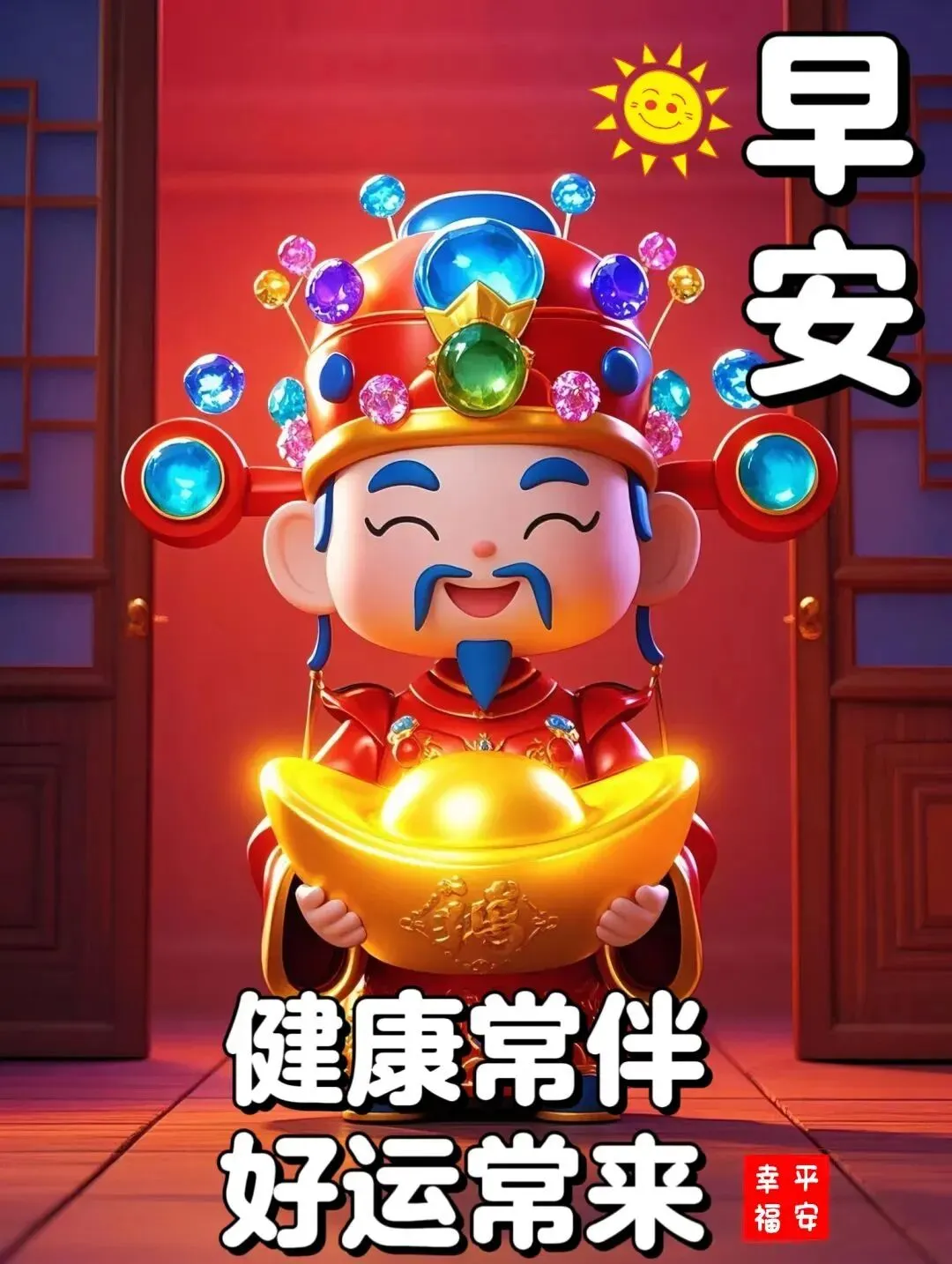 清晨起来问声好,祝福早早送身旁,眉眼弯弯喜气扬,晨露滋润百花香,财源滚滚向你淌,平安伴你走四方,开心快乐每一天,吉祥如意到永远!早安愉快 !🌹🍻🌞🌺🌸🎉