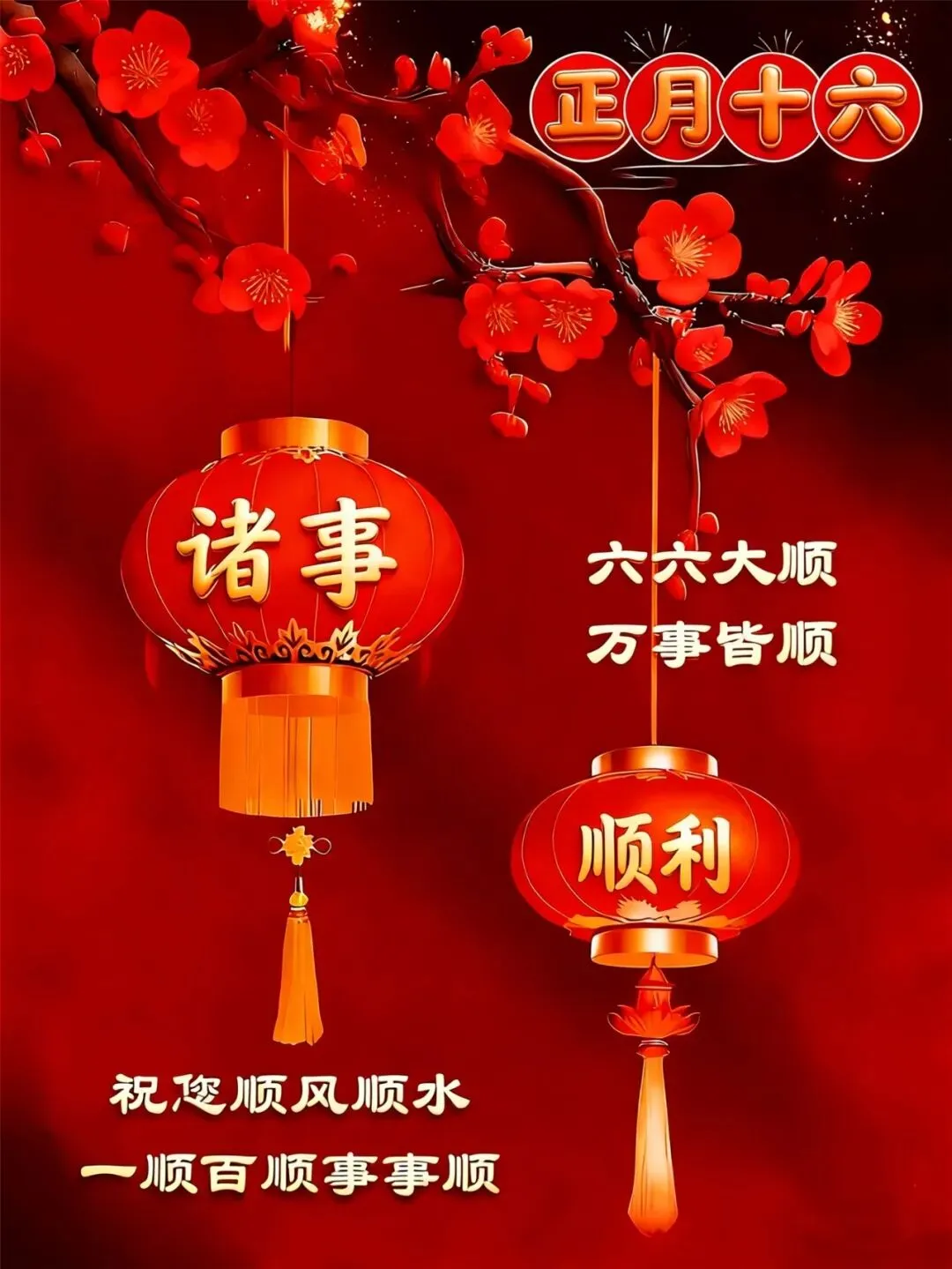 正月十六到,祝你六六大顺,事事顺心如意。愿你天顺地顺人更顺,心顺意顺事事顺。祝你马年一帆风顺,快来接收我的祝福吧!早安!