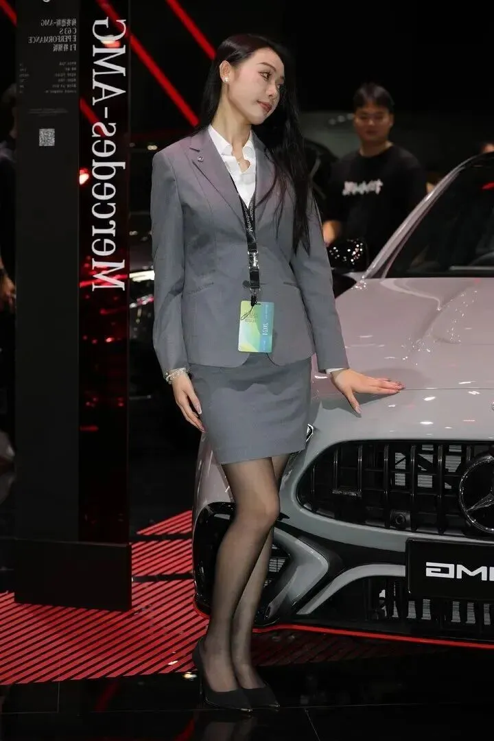 灰色西装套裙.穿出高.级感!车展女.神亲授职.场穿搭秘诀,.普通女孩也.能秒变优.