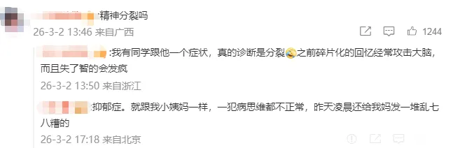 一些网友怀疑,她是精神分裂或抑郁症犯了。