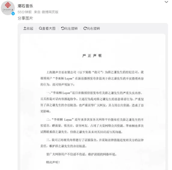 事情越闹越大,潮石音乐发布了严正声明,回应了这件事。