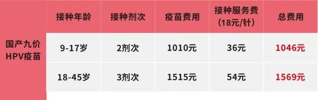 9-17岁女性仅需2剂(第0、6个月)523元/剂,2剂共1046元;
