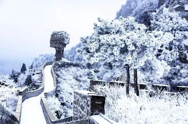 冬日里,银装素裹宛如仙境,雾凇冰挂美若琉璃。四季更迭的轿顶山,始终以最壮阔的姿态,迎接每一位远道而来的客人。